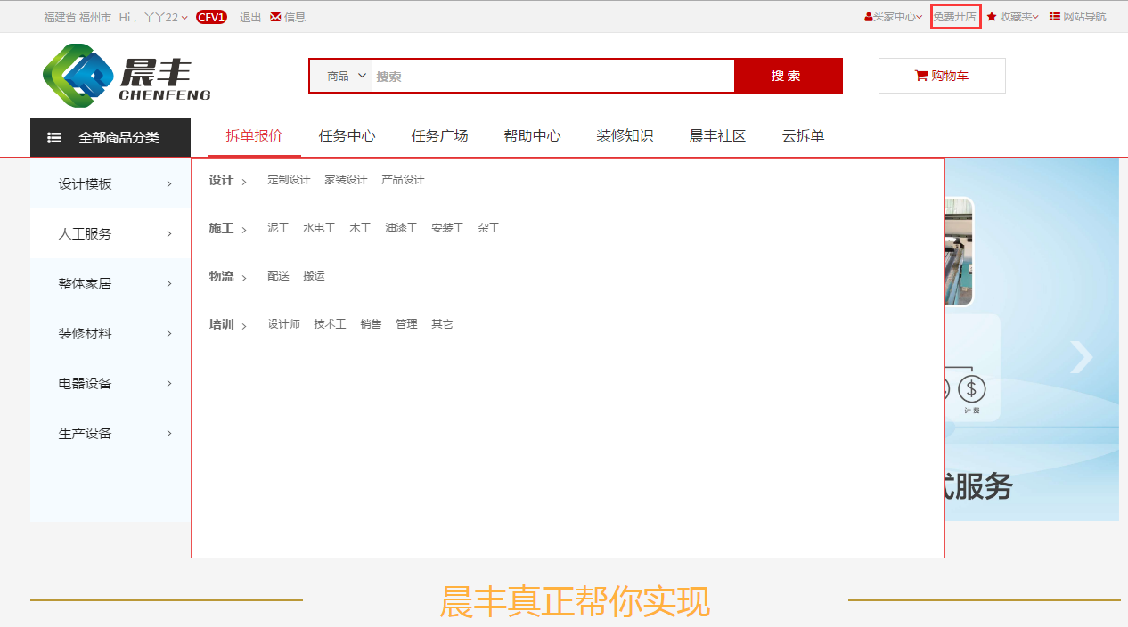 用户使用普通账户登录平台www.ihome6.com首页,点击免费开店