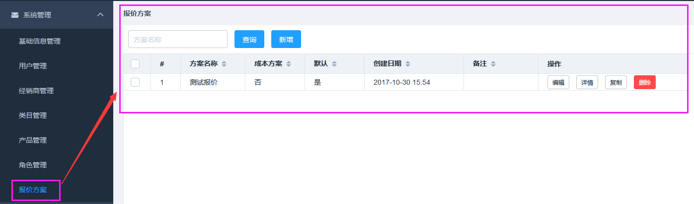 报价方案在本系统中设置的报价方案,会在设计软件进行报价时供用户选择相应的报价方案,以及在本系统的订单管理中也可选择相应的报价方案;