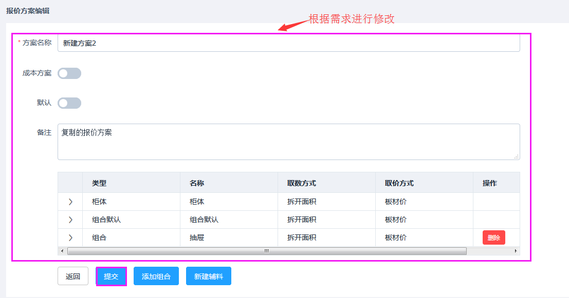 第二种方式:未开启按组合默认,则抽屉的报价会按根据组合里面抽屉的取价方式