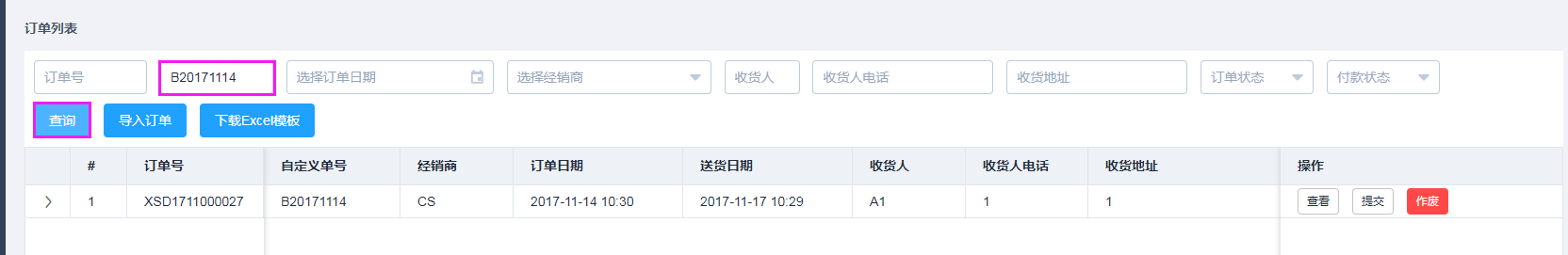 输入自定义单号,点击查询