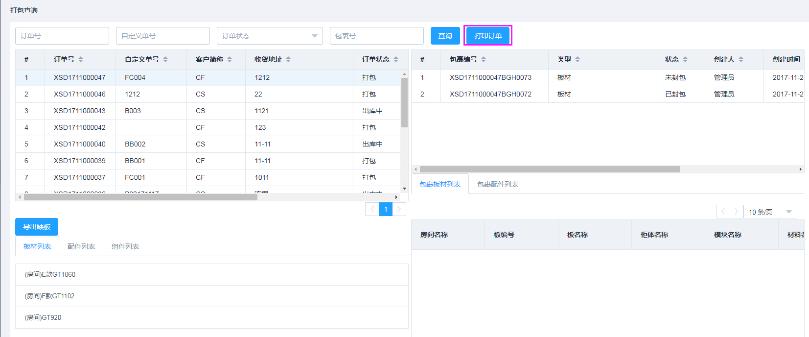 查询打包订单
