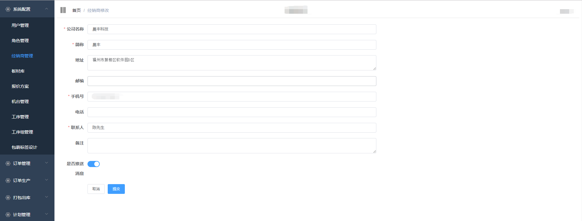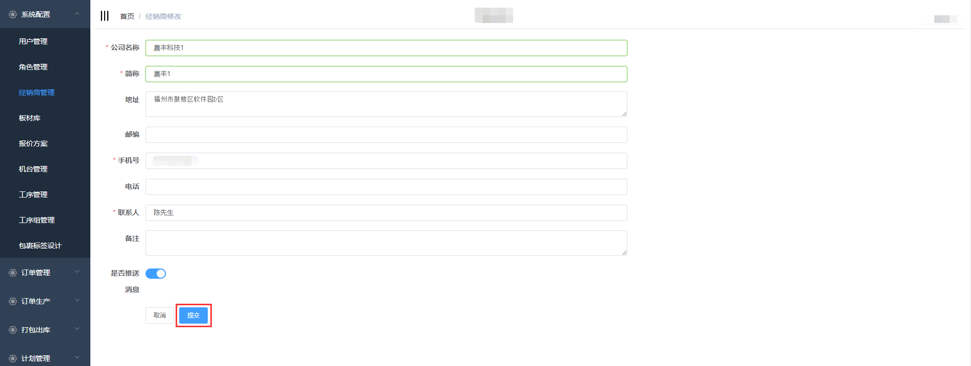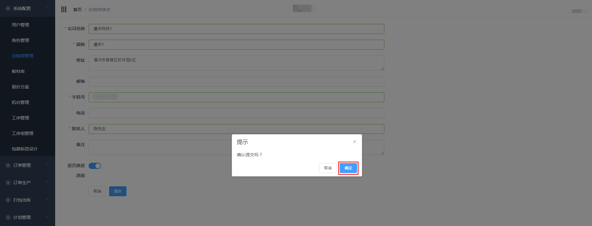 对经销商信息进行修改后,点击提交