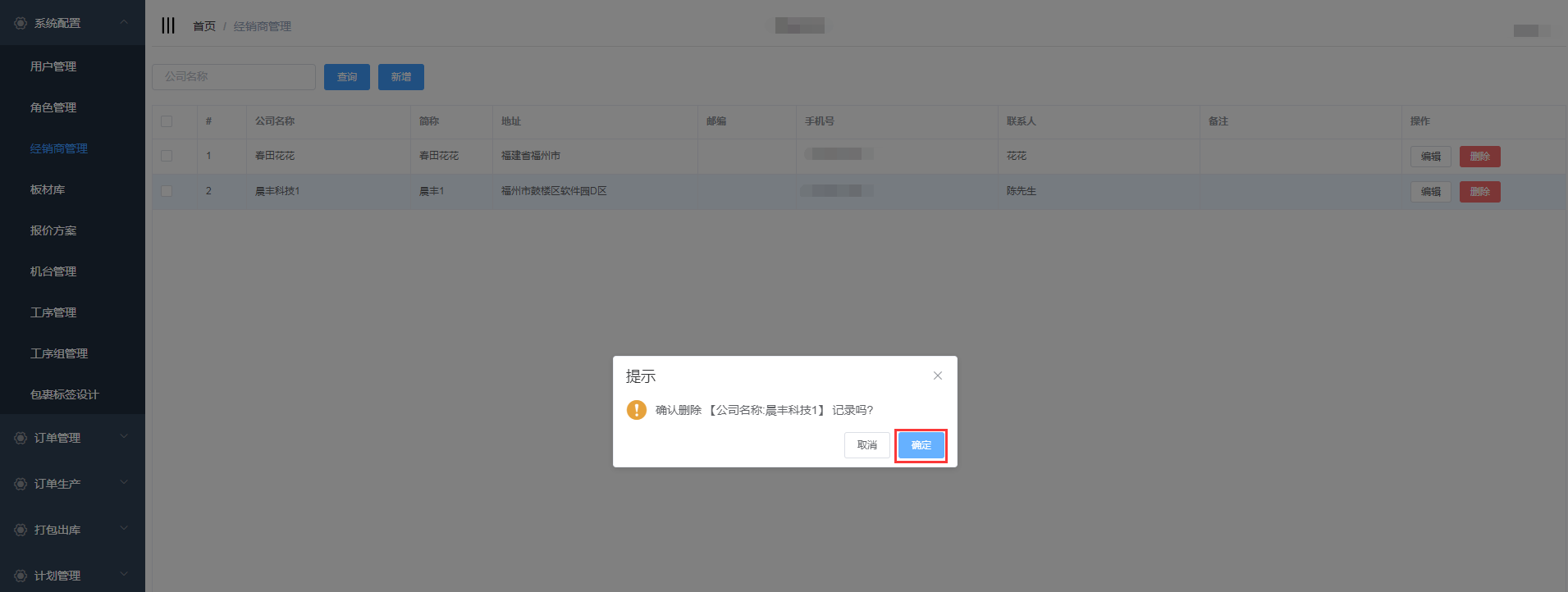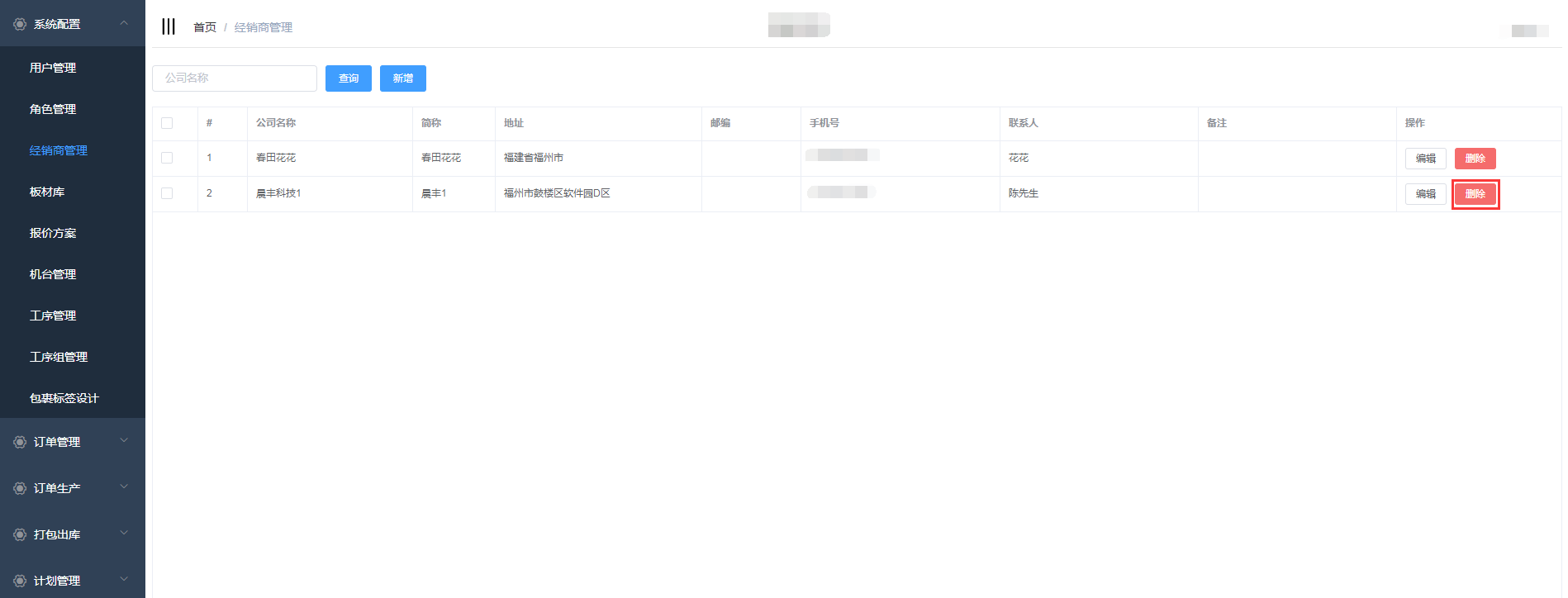 选择要删除的经销商,点击“删除”按钮