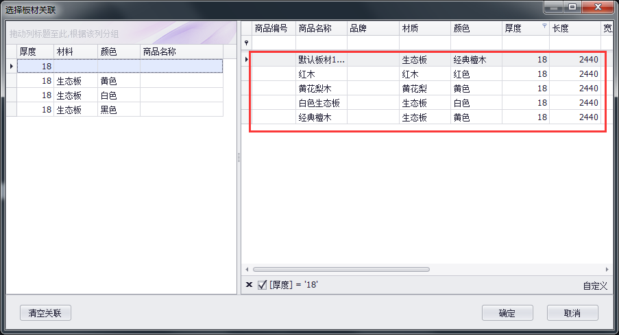 输入板材名称可查询相应的板材