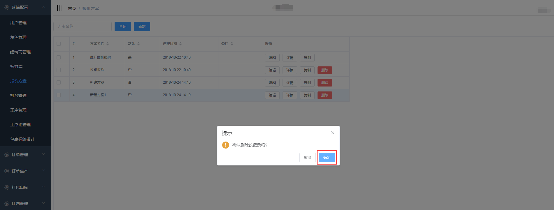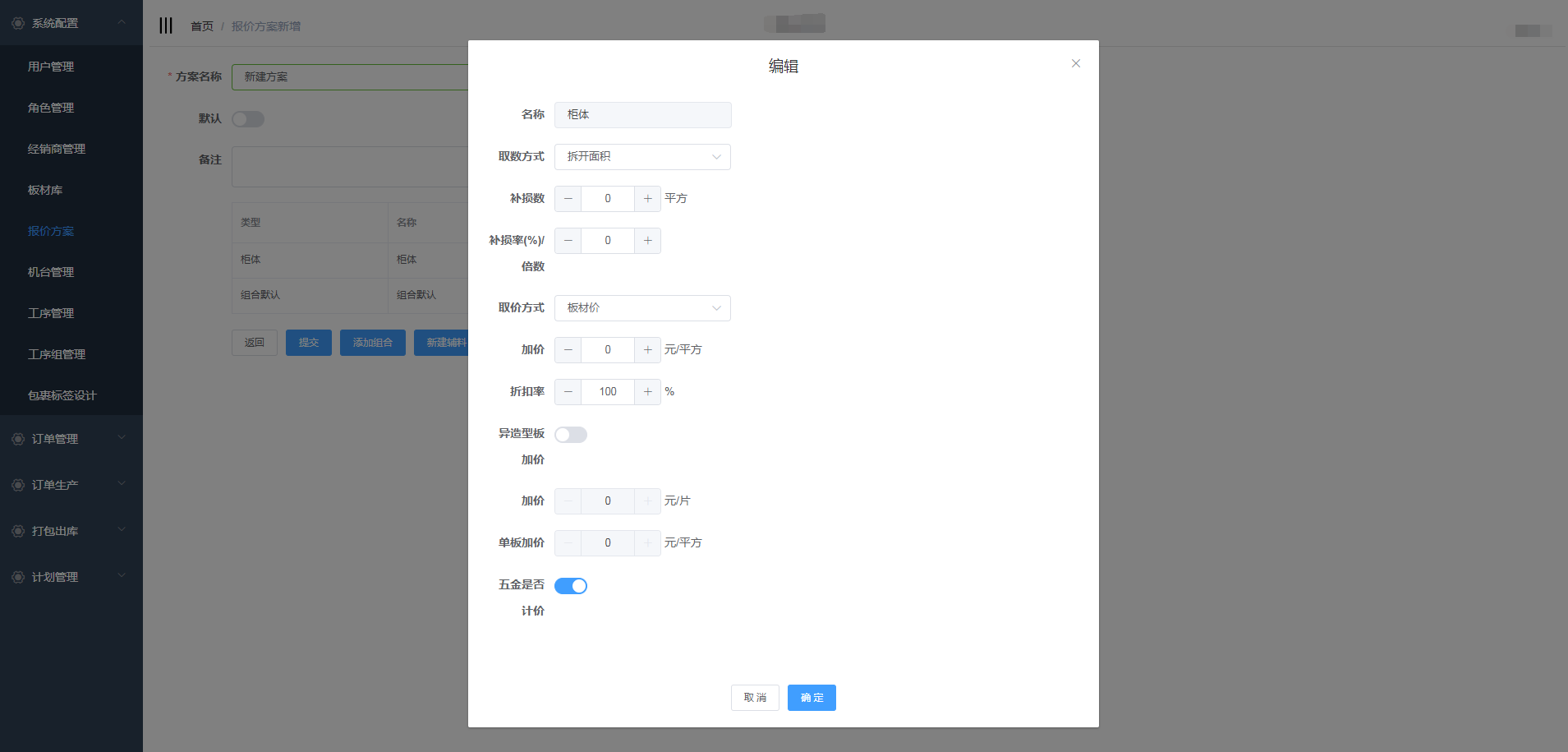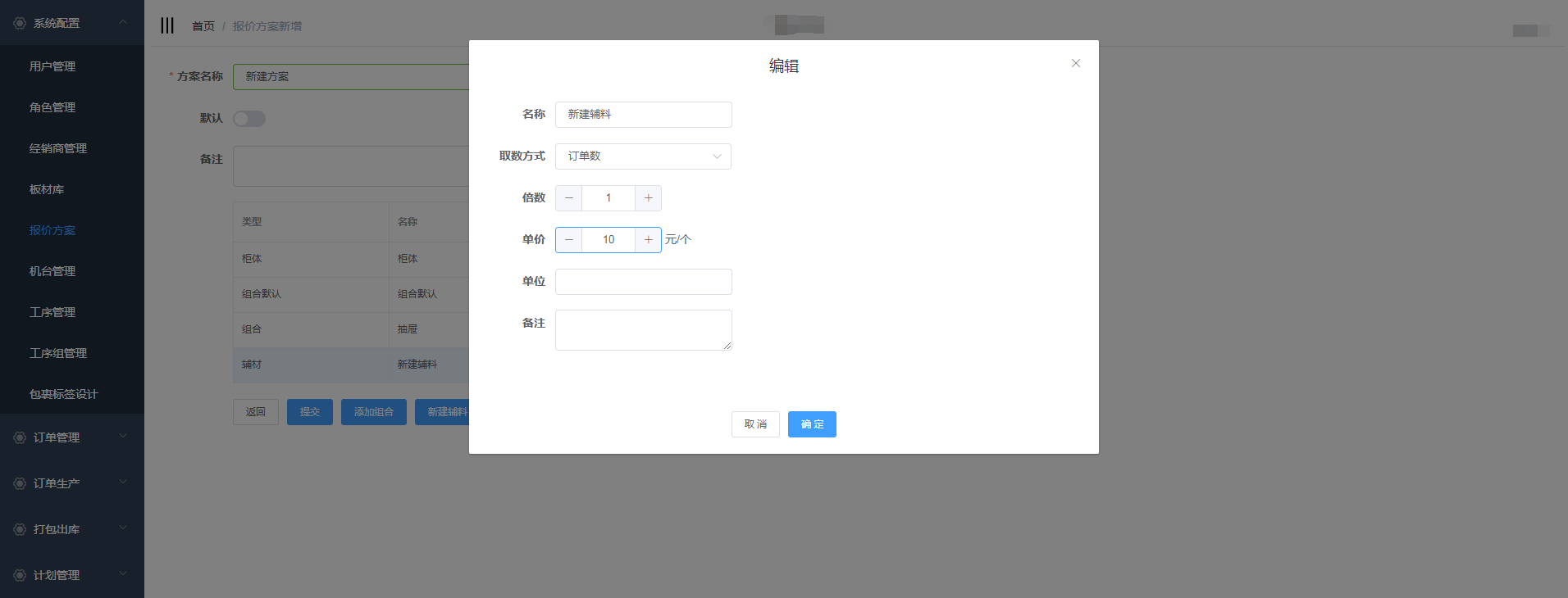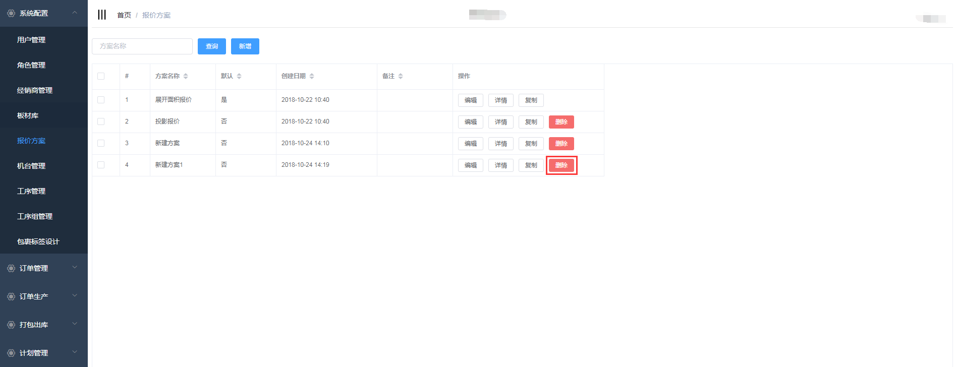 点击系统管理->报价方案,进入报价方案页面 ,系统会给一些默认的报价方案,当然,用户也可自行新增和编辑报价方案