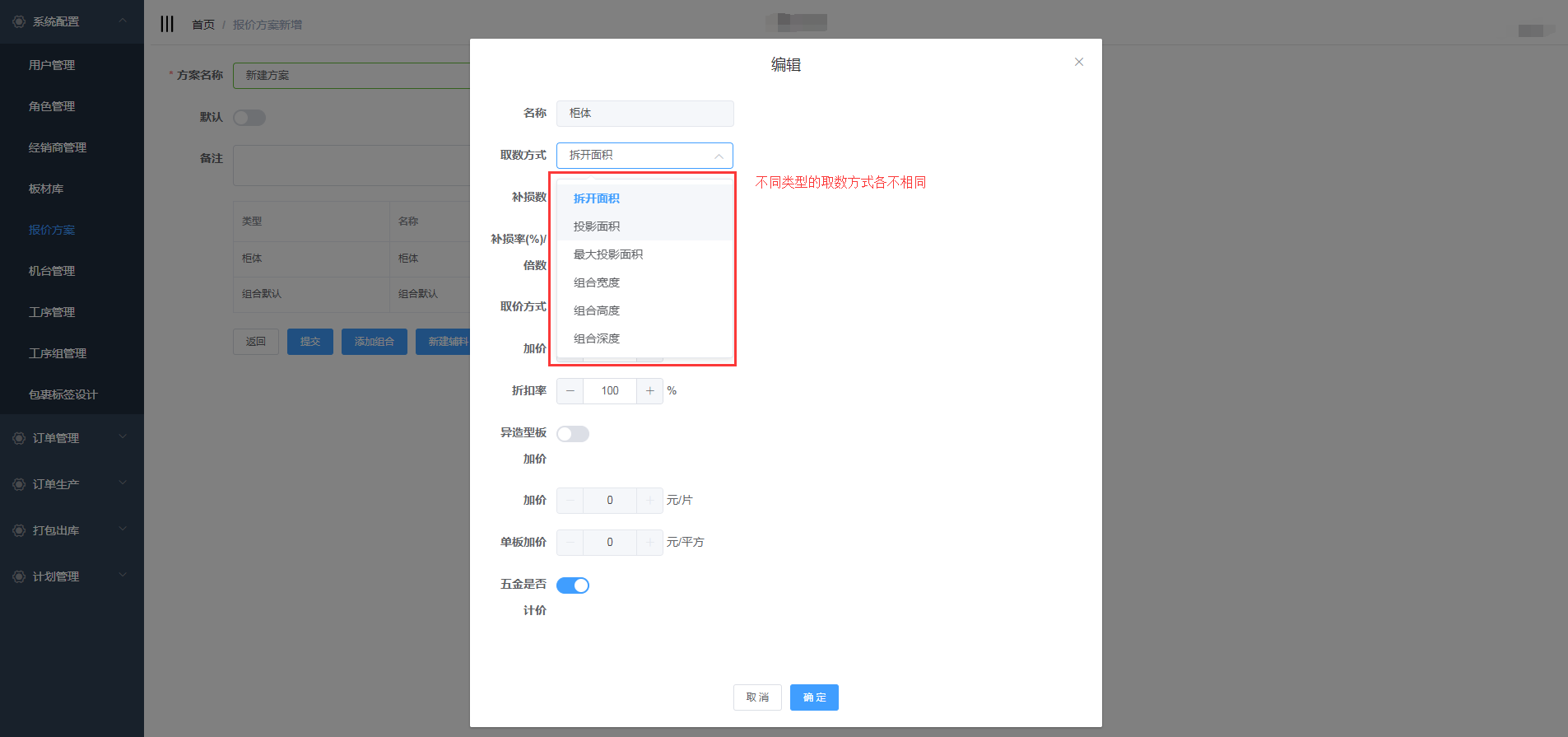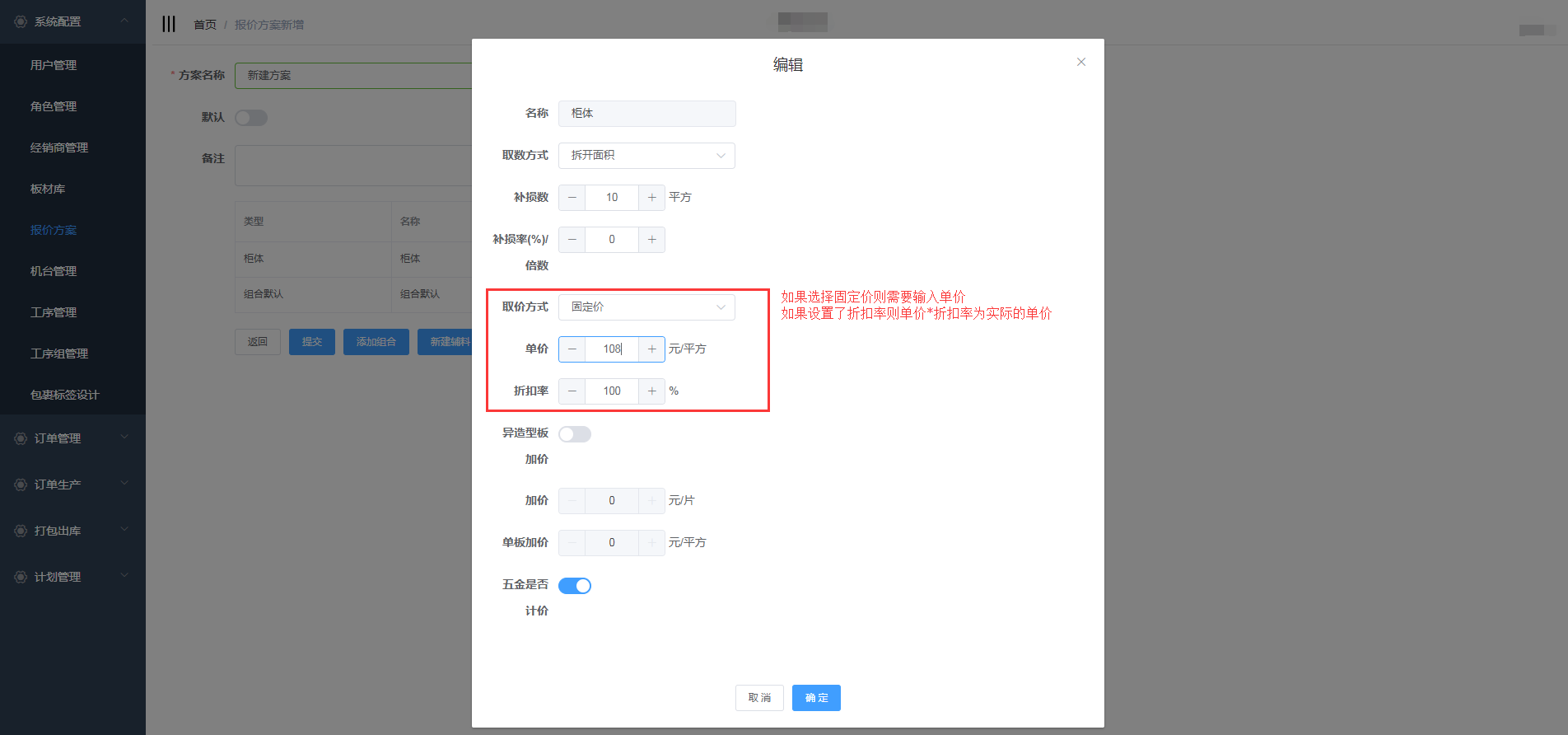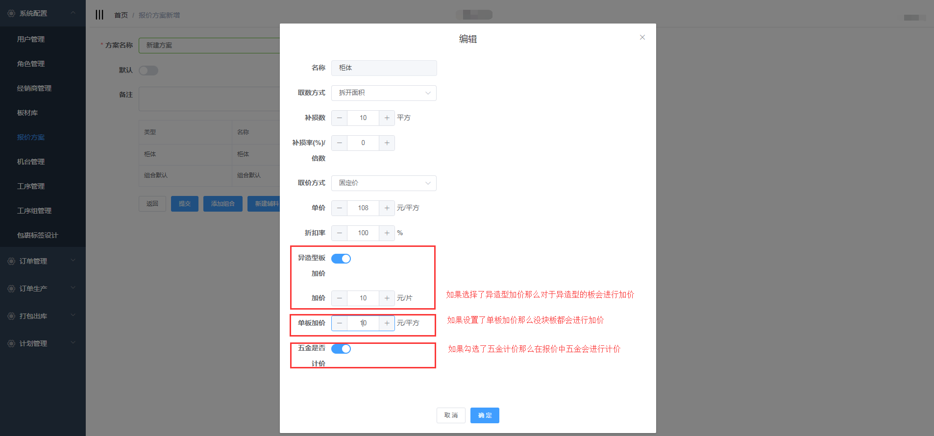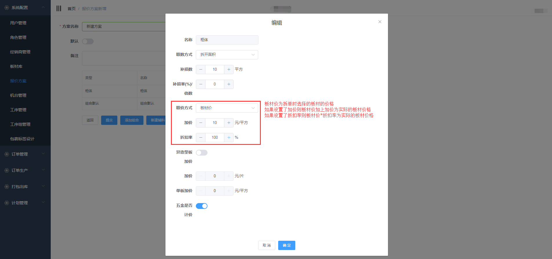 在本系统中设置的报价方案,会在设计软件进行报价时供用户选择相应的报价方案,以及在本系统的订单管理中也可选择相应的报价方案;