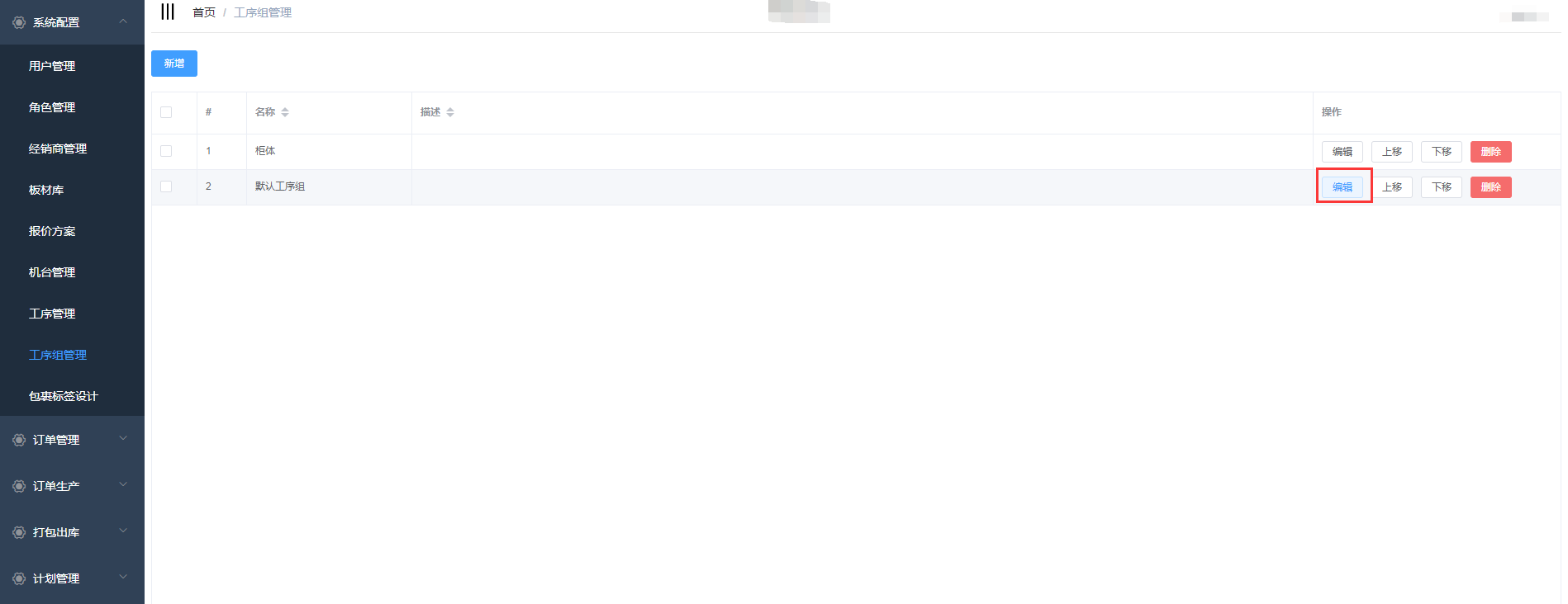 选择要修改的工序组,点击编辑按钮