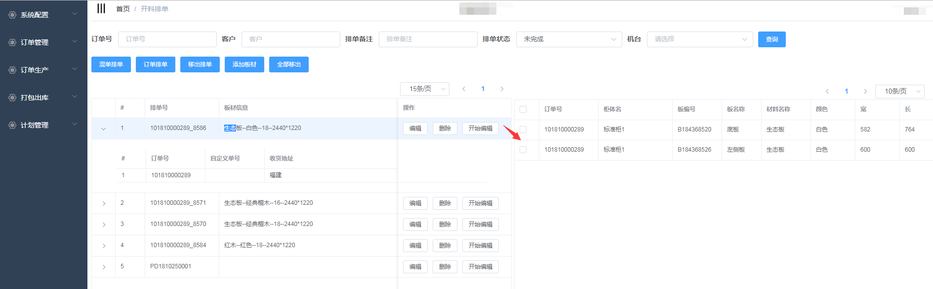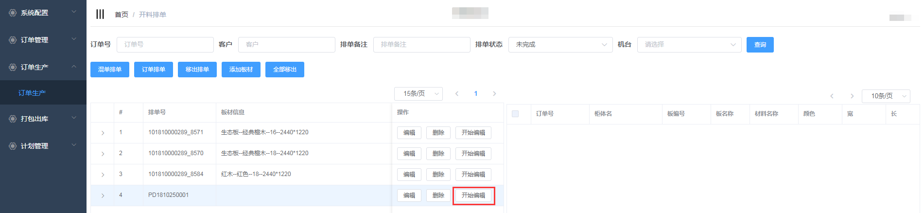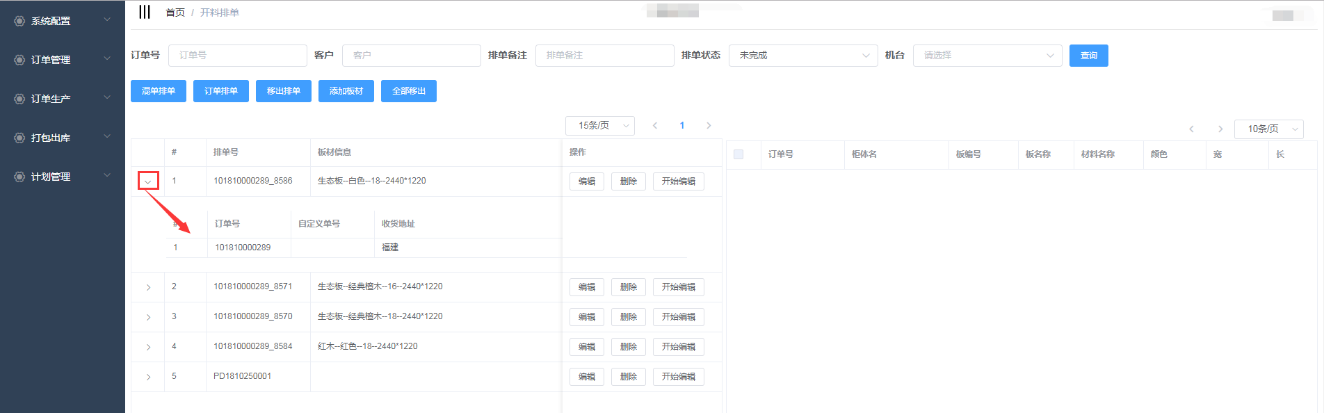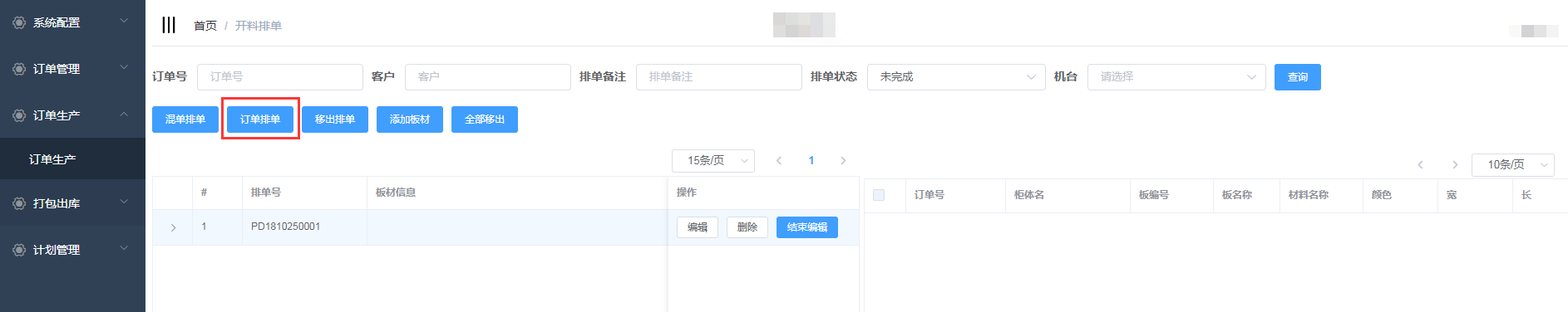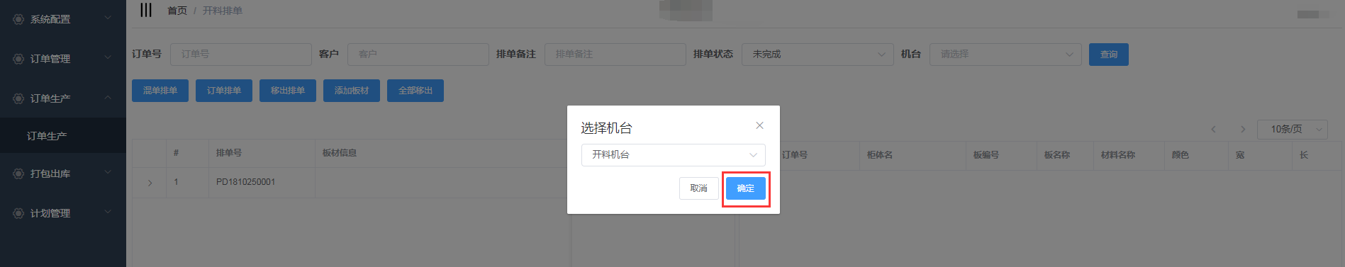 进入开料排单界面