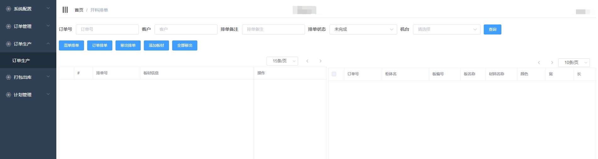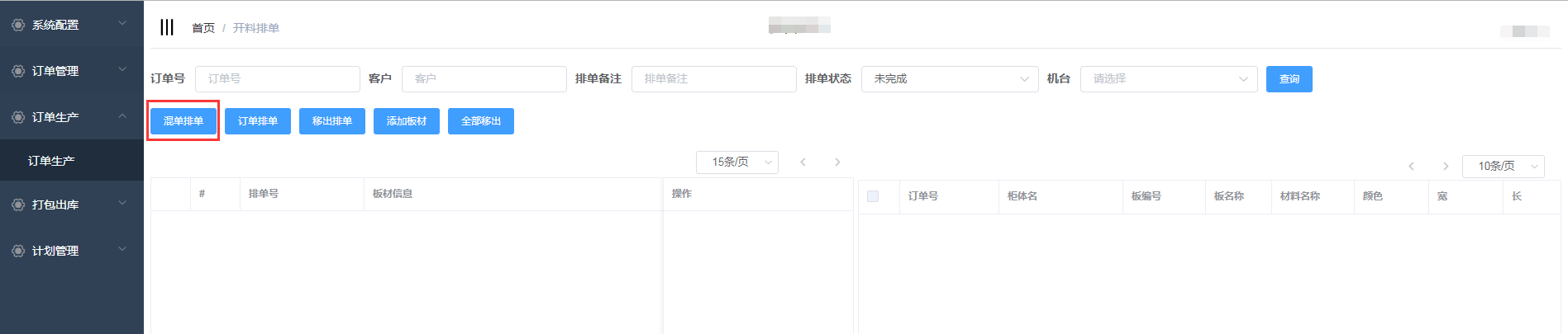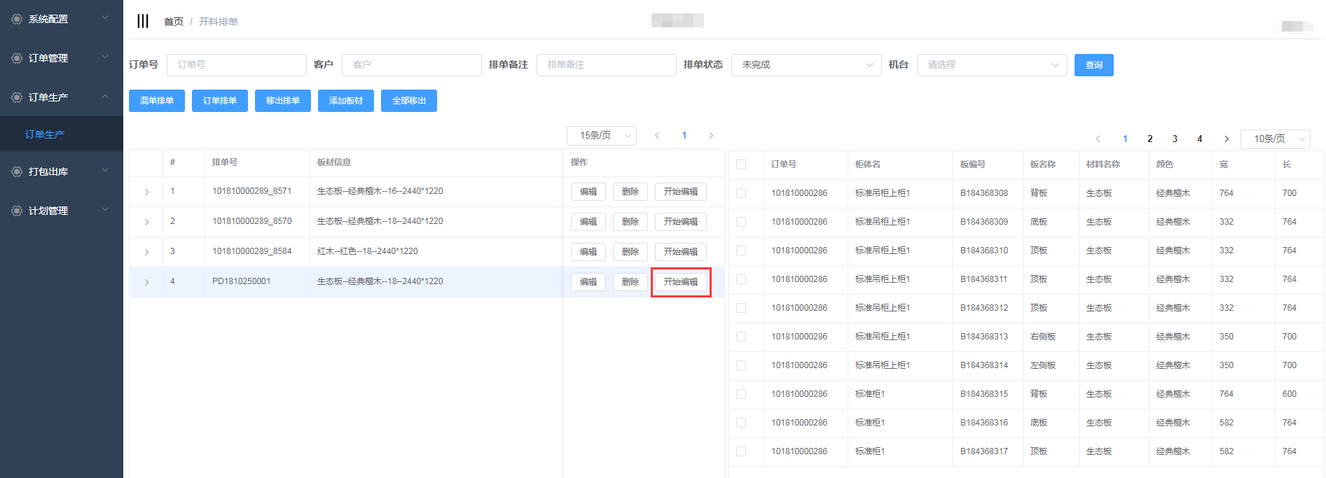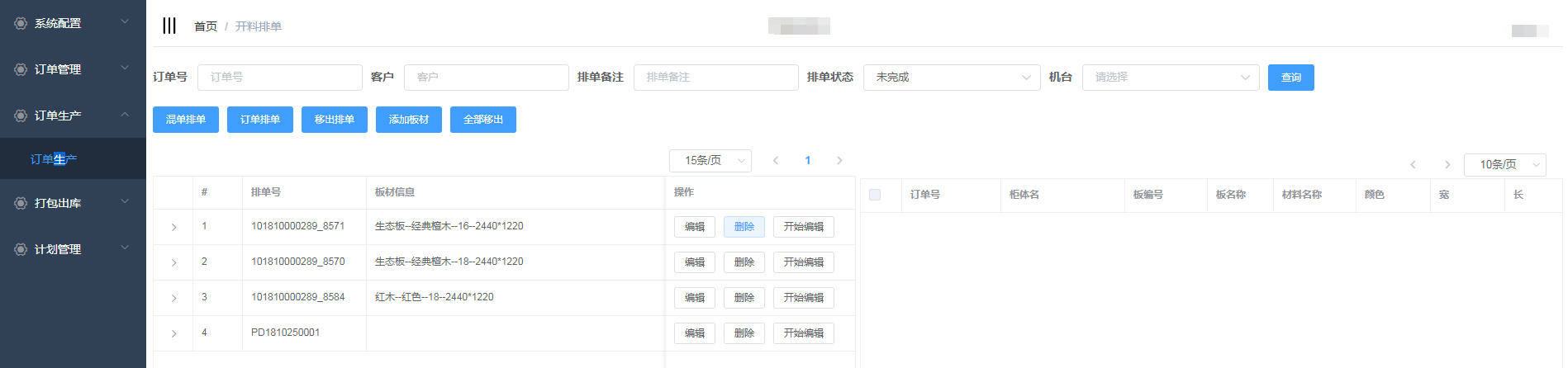 进入开料排单界面