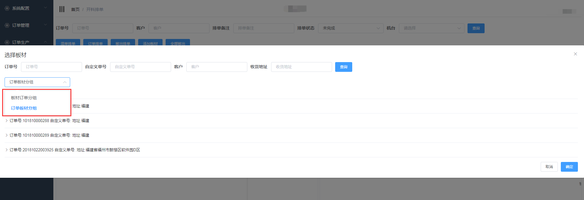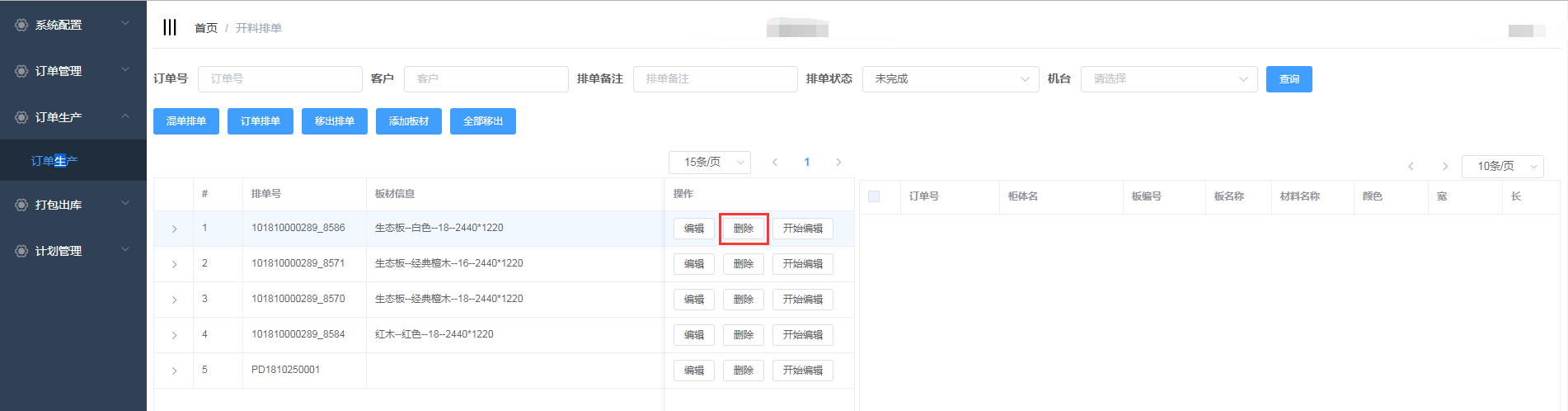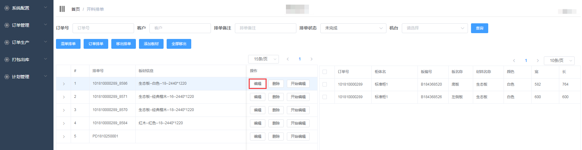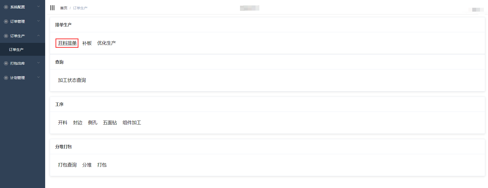 进入开料排单界面