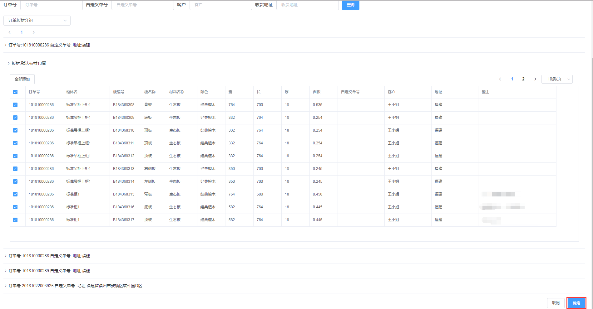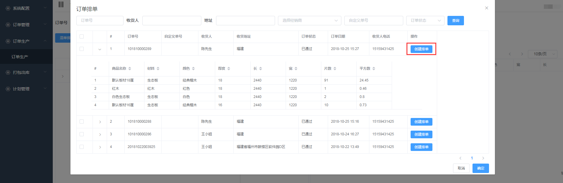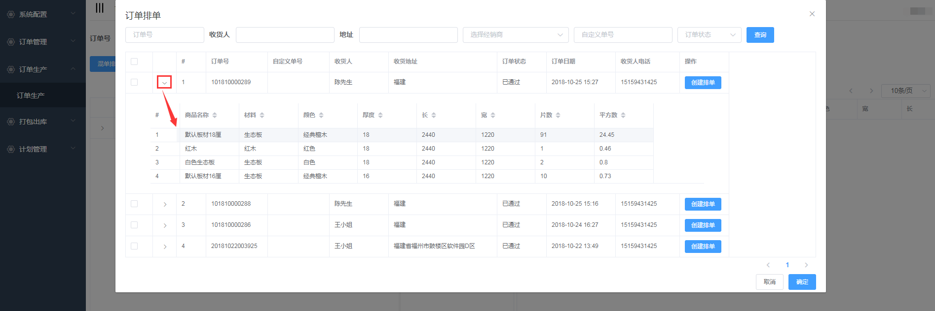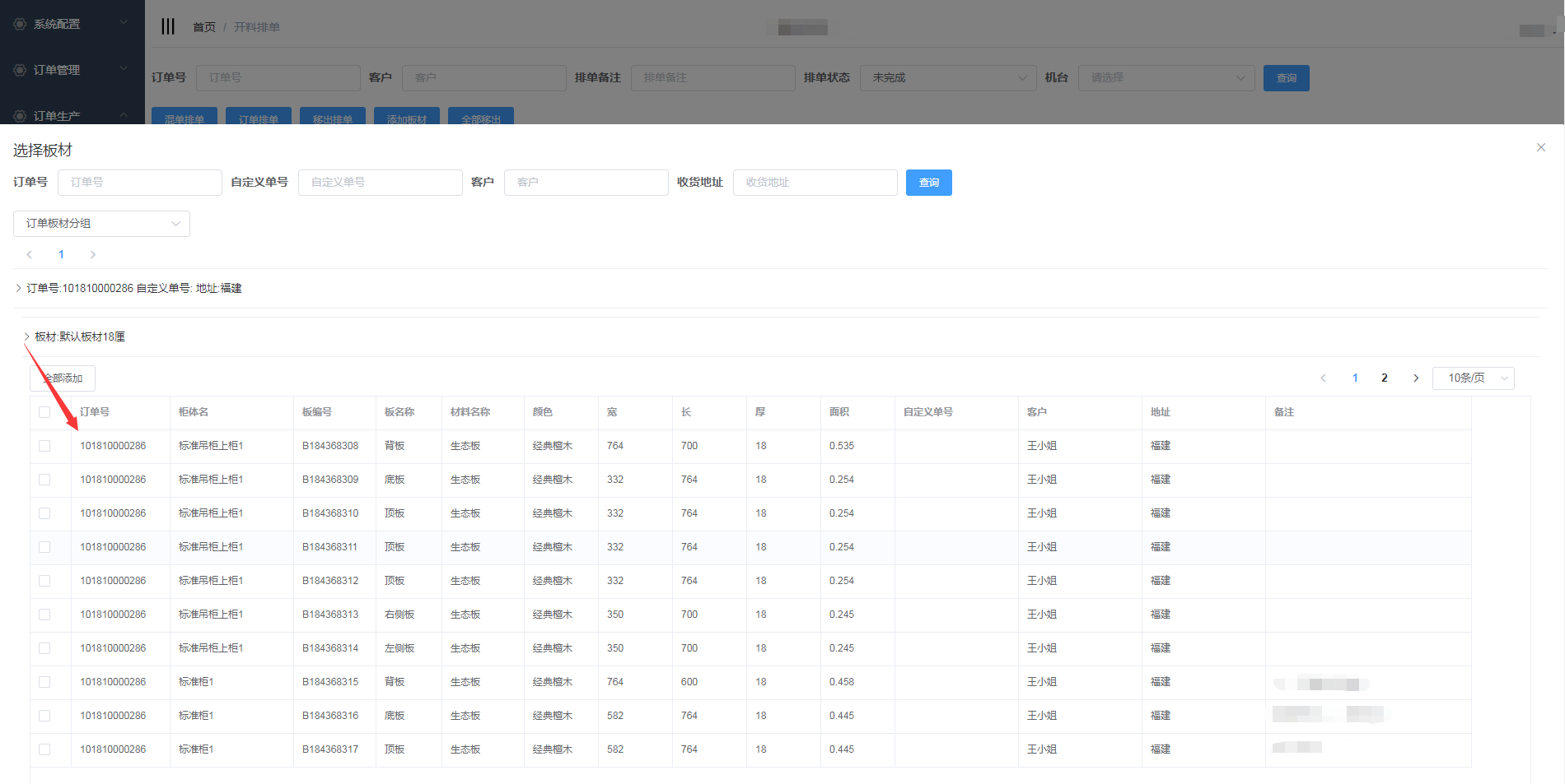 排单新增成功,会自动生成排单号,并且在开料排单界面显示(新增的混单排单需要手动添加板材)