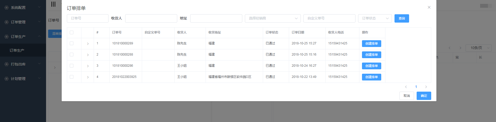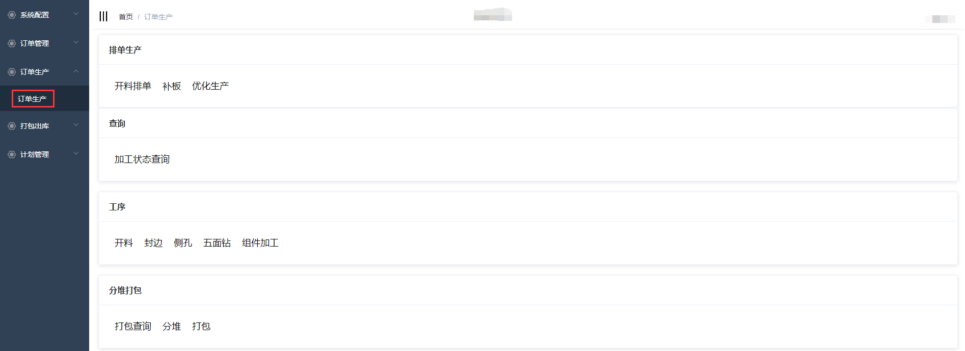 点击订单生产-订单生产,进入订单生产页面