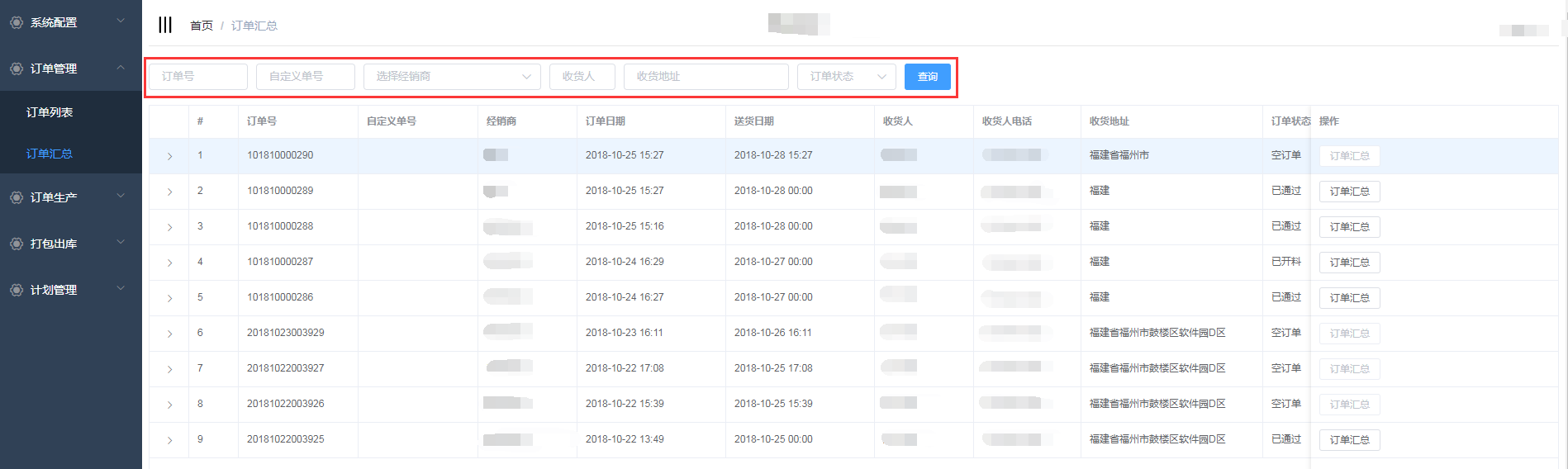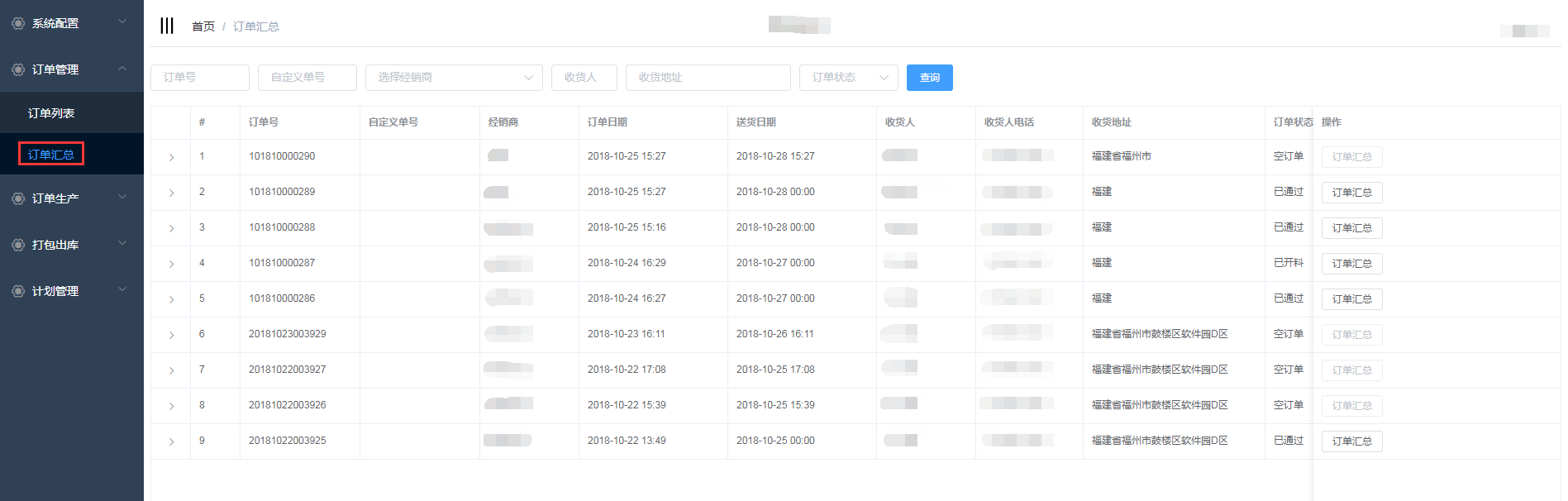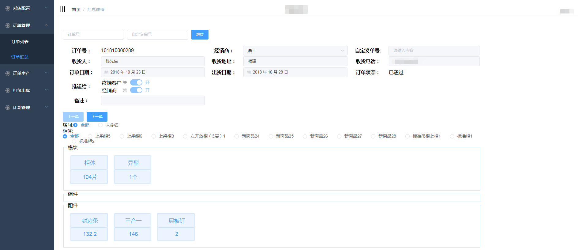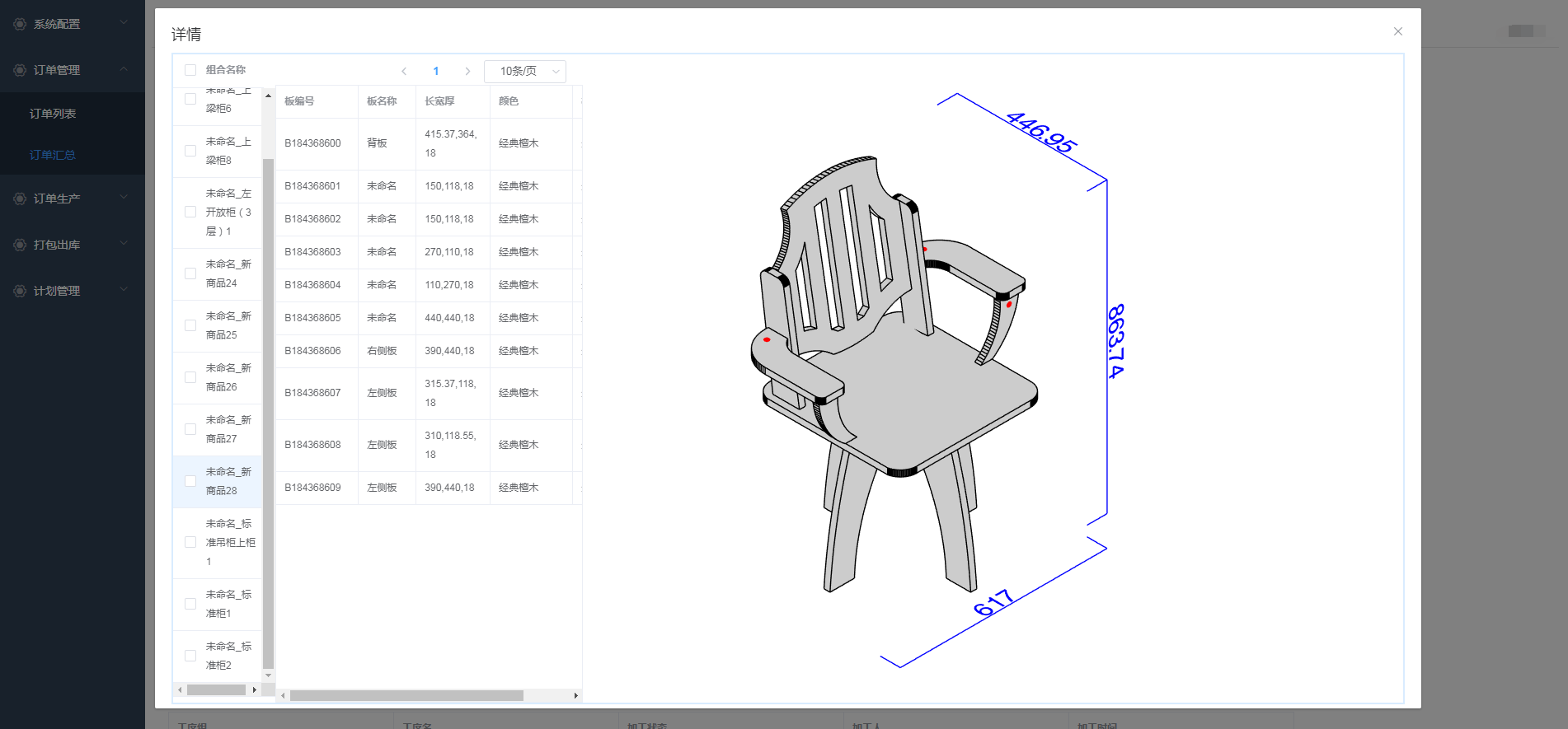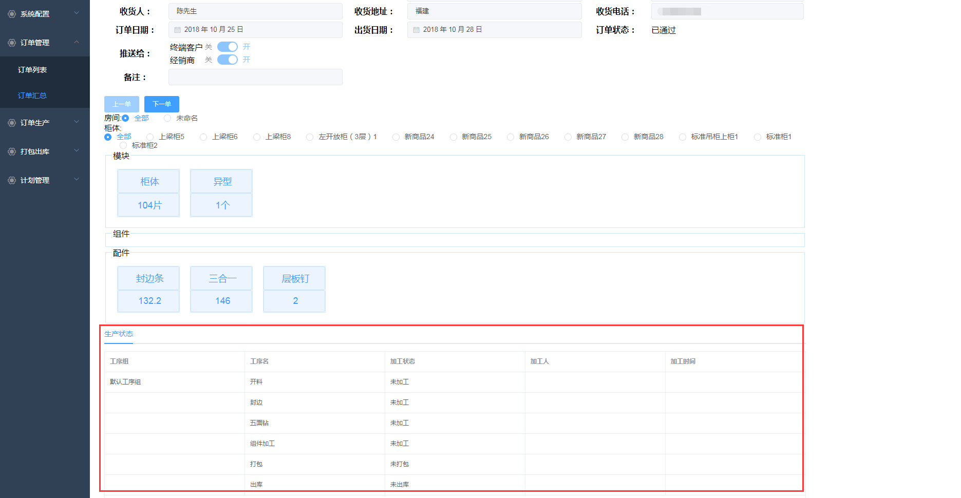 目的:订单汇总模块通过用图形化给工人更直观的了解到订单需要做那些东西,同时给外部的人观看可以隐蔽价格等敏感信息