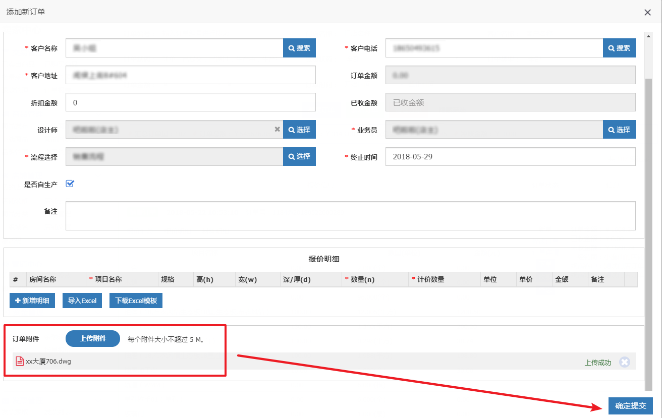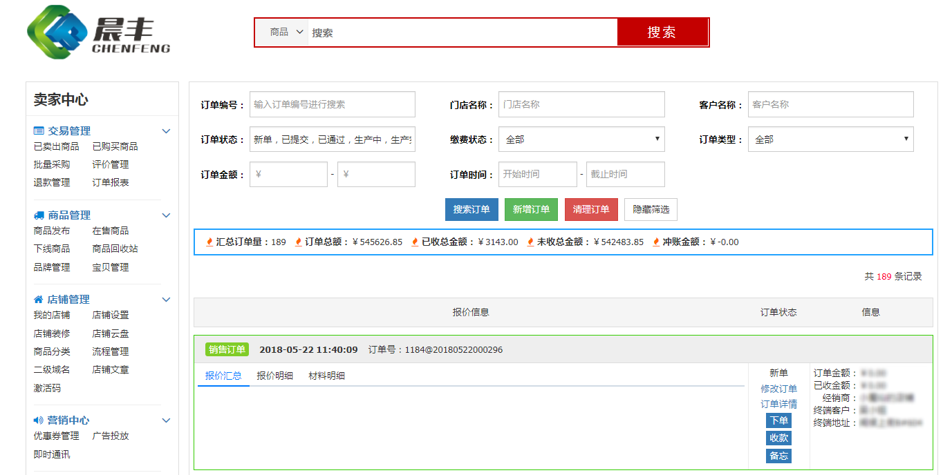 确定提交后,直接跳转到晨丰爱家网商城平台首页,新增订单完毕;