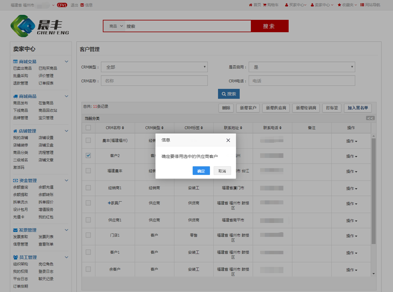 提示是否要停用所选供应商,点击确定即加入黑名单