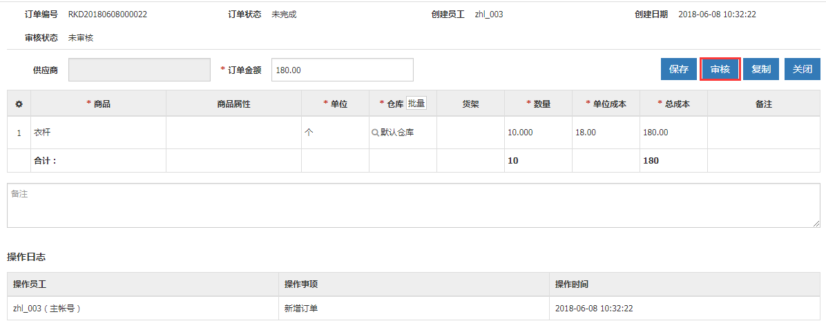 当用户发现其他入库订单的商品或者数量错误时,可以进行反审核修改
