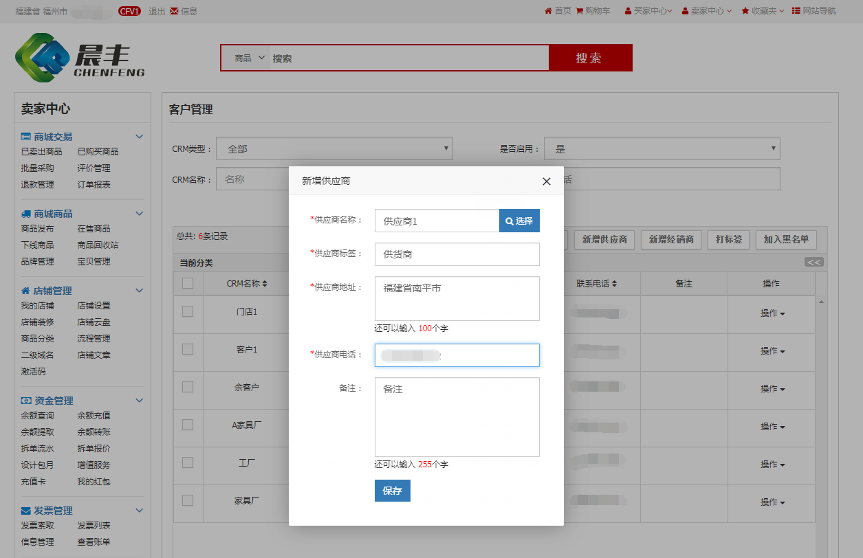 新增成功的供应商在仓库管理-新增采购单页面可进行选择