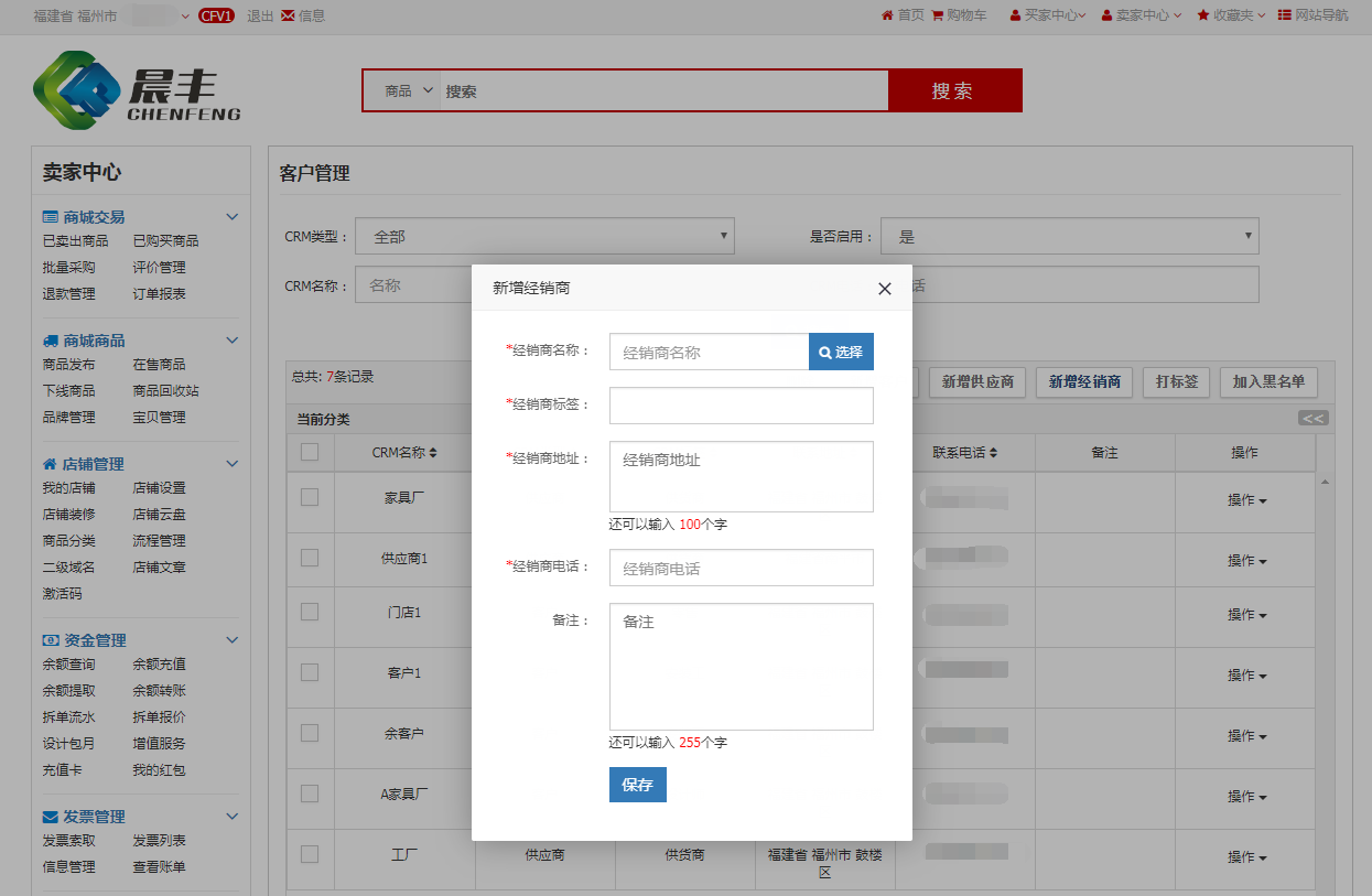 在客户管理中,点击新增经销商按纽