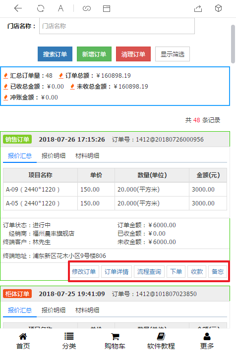 可以随时查看订单详情、流程查询、订单收款、设置订单备忘等一系列订单的操作;