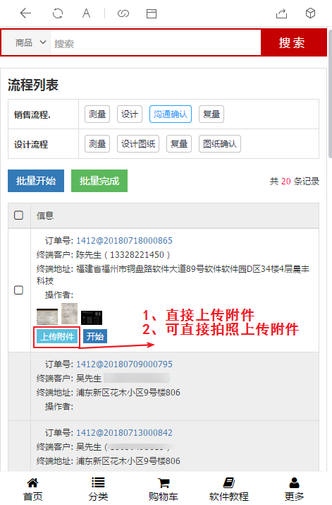 员工流程操作,可直接通过手机拍照上传现场情况;