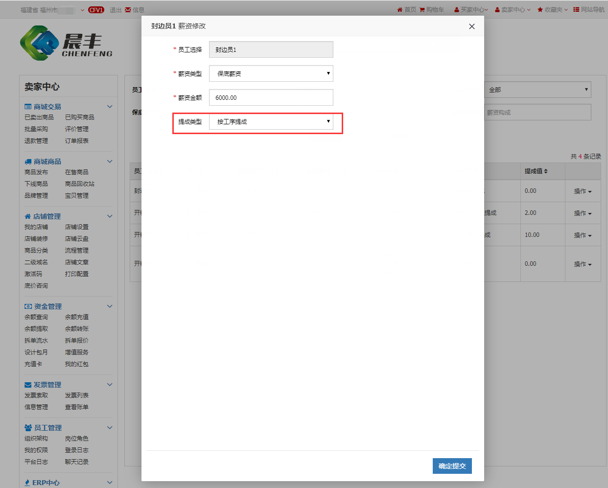 在晨丰管理系统-生产配置管理-工序管理中为工序设置提成类型(只有增值包用户才可设置员工对erp工序进行提成)