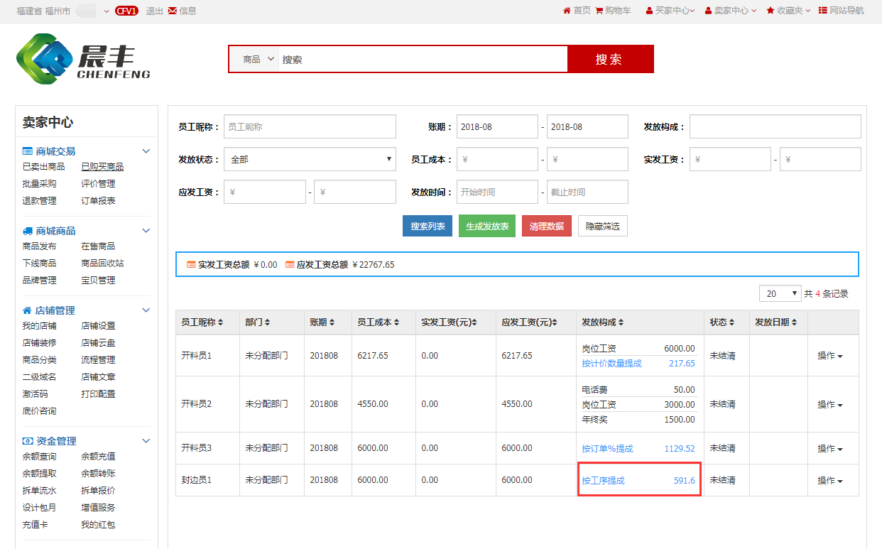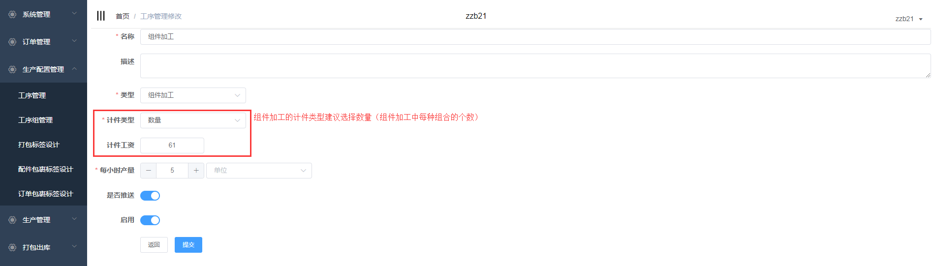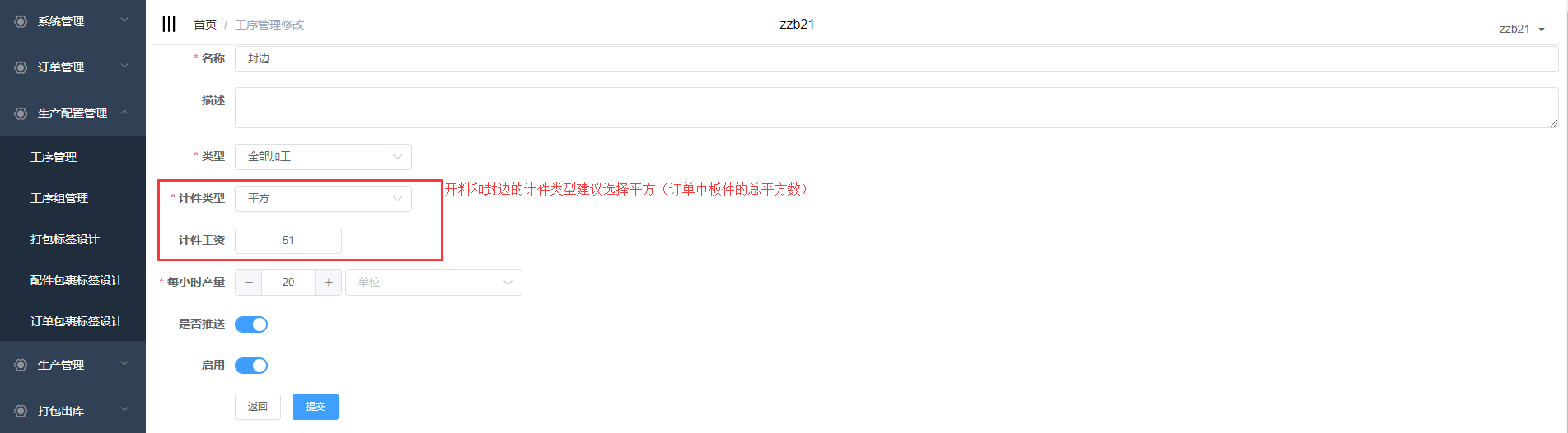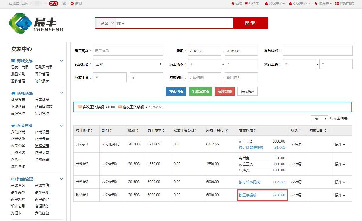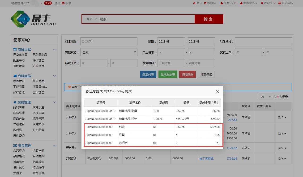 明细中可以看到封边员1新增了erp的工序提成