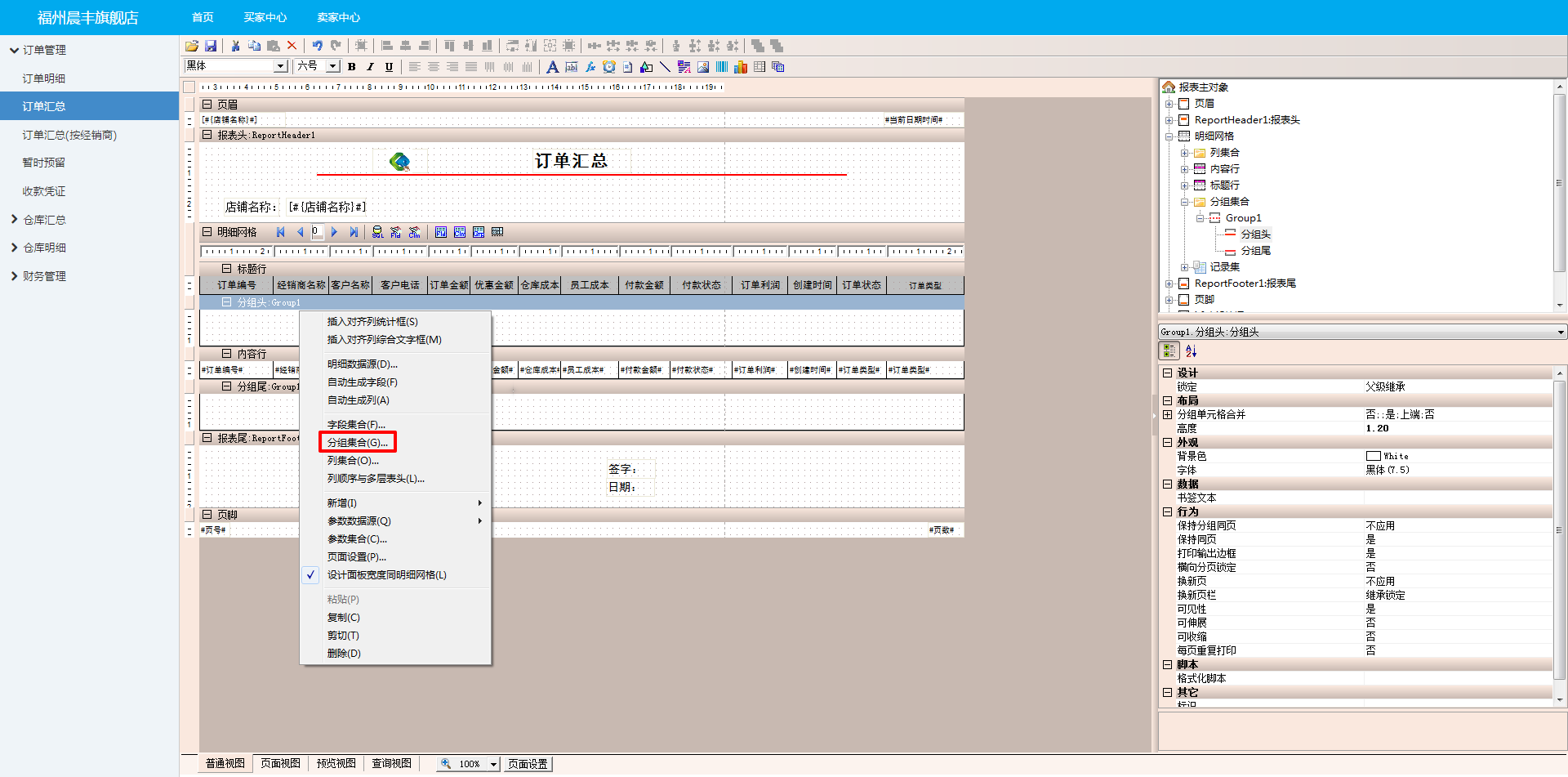 在分组尾可对分组进行合计,首先在一个静态框中输入文字