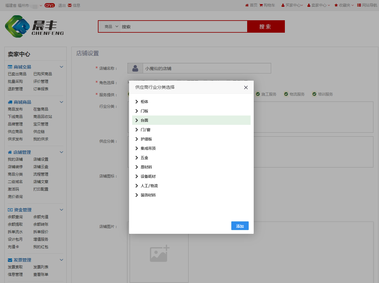 保存成功后,其他用户在供应链的柜体/展柜分类下可查看到该店铺