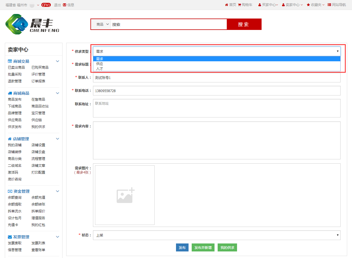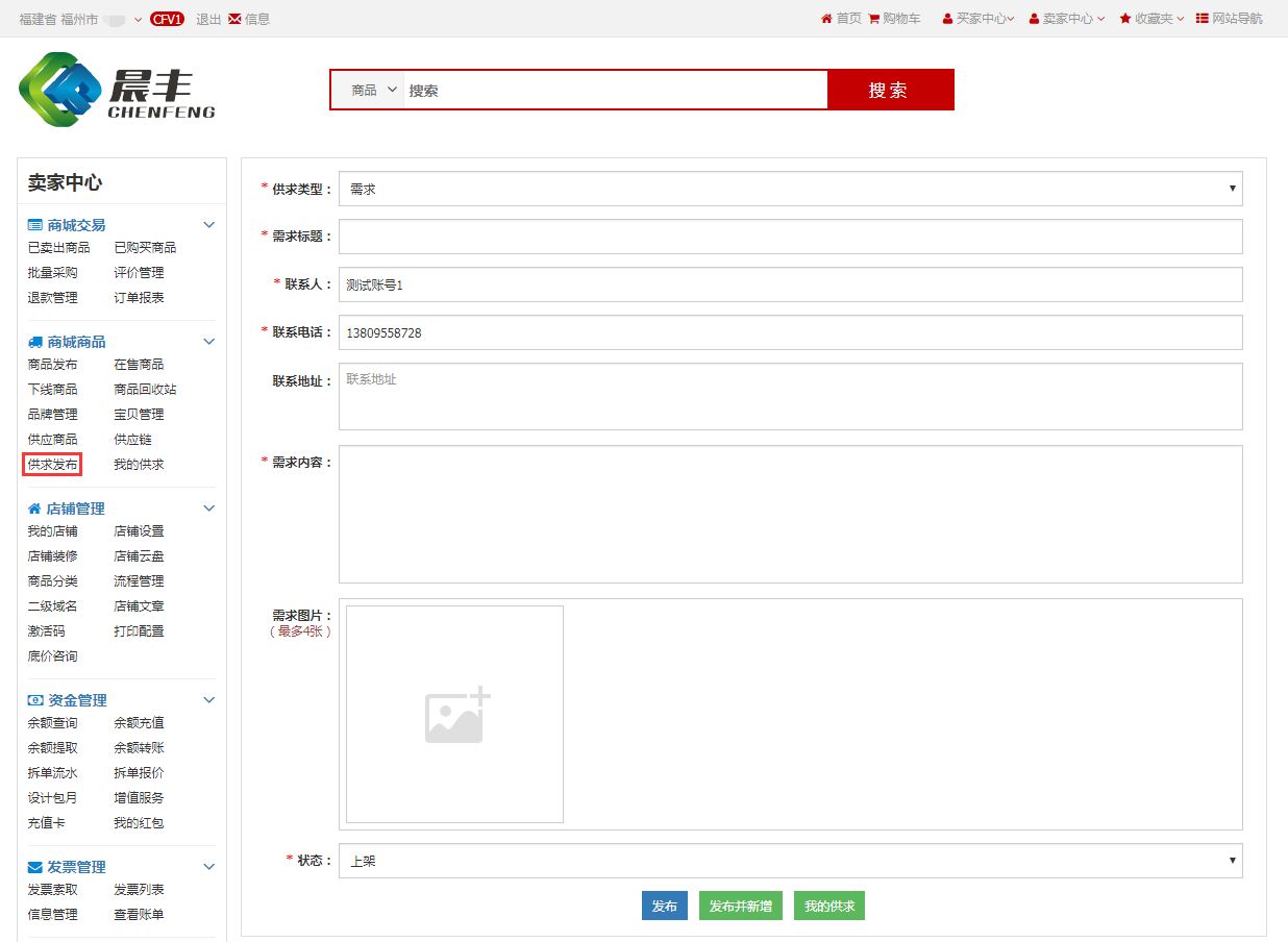 点击卖家中心-店铺管理-供求发布,进入供求发布页面