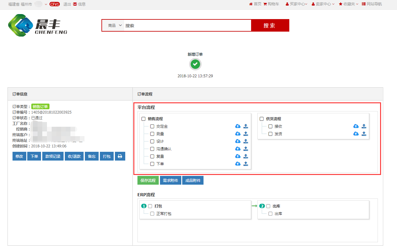 设置完订单流程后,在订单详情页,可看到设置的多个流程