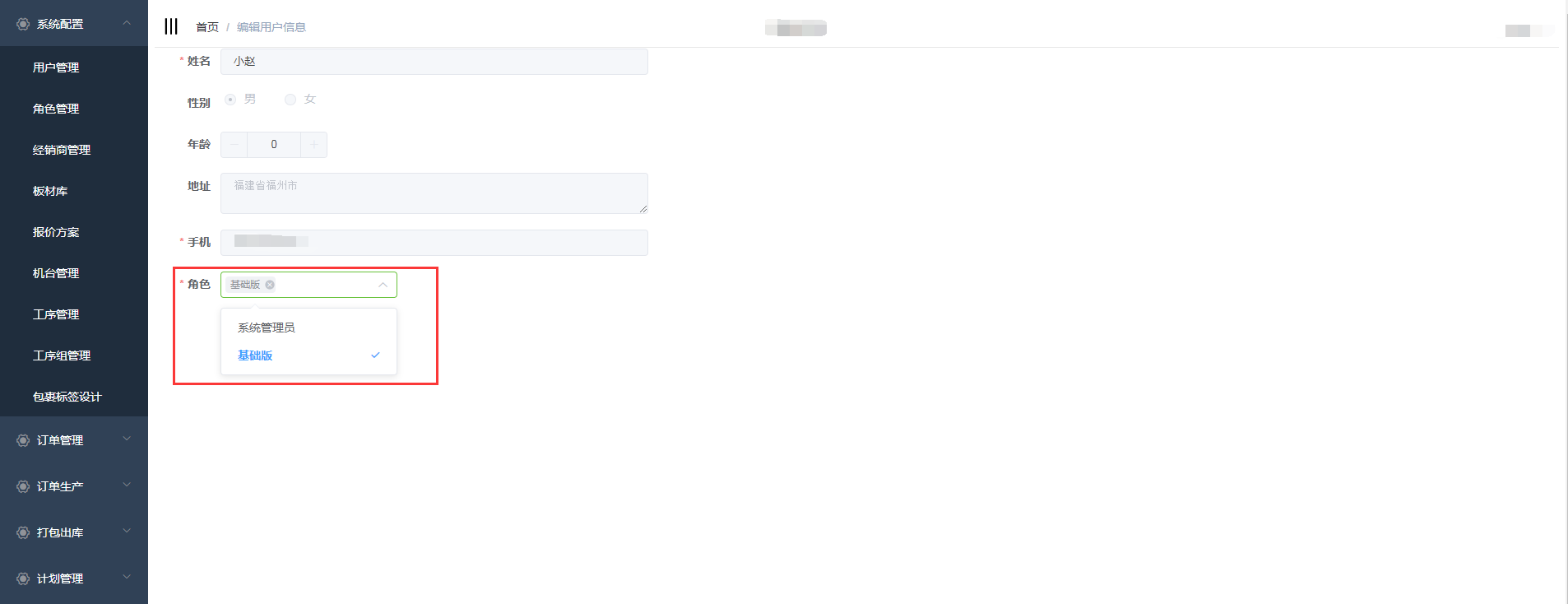 在编辑用户信息页面,可为该用户选择角色