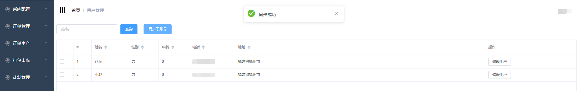点击同步子账号按钮,可同步平台子账号