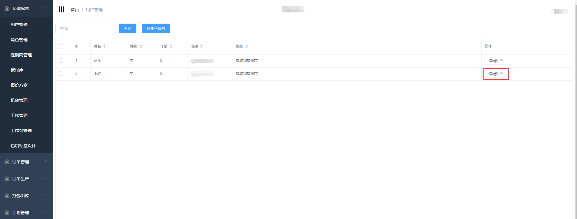 用户管理中配置的是可以登录晨丰管理系统的用户