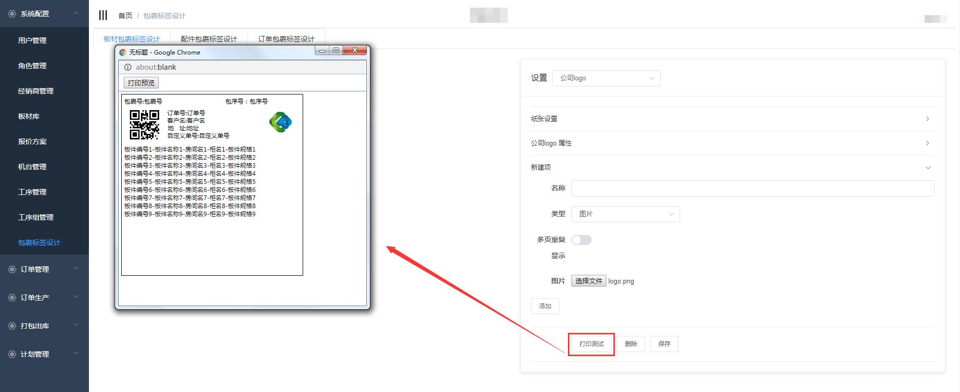 点击打印测试按钮,可对配置进行打印预览