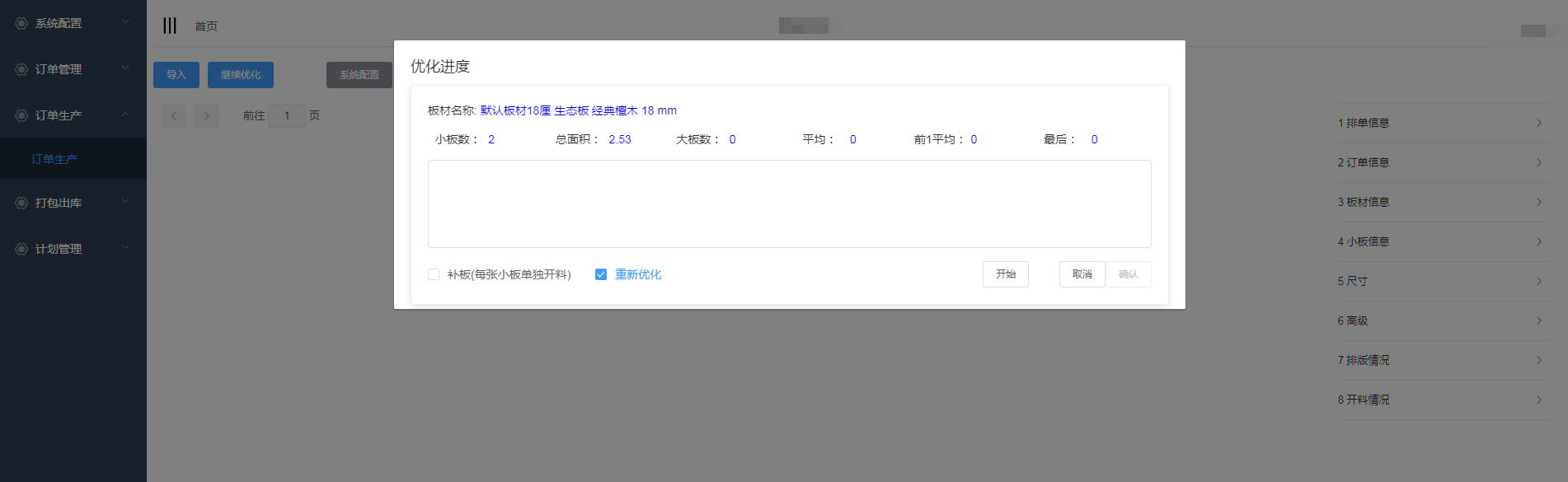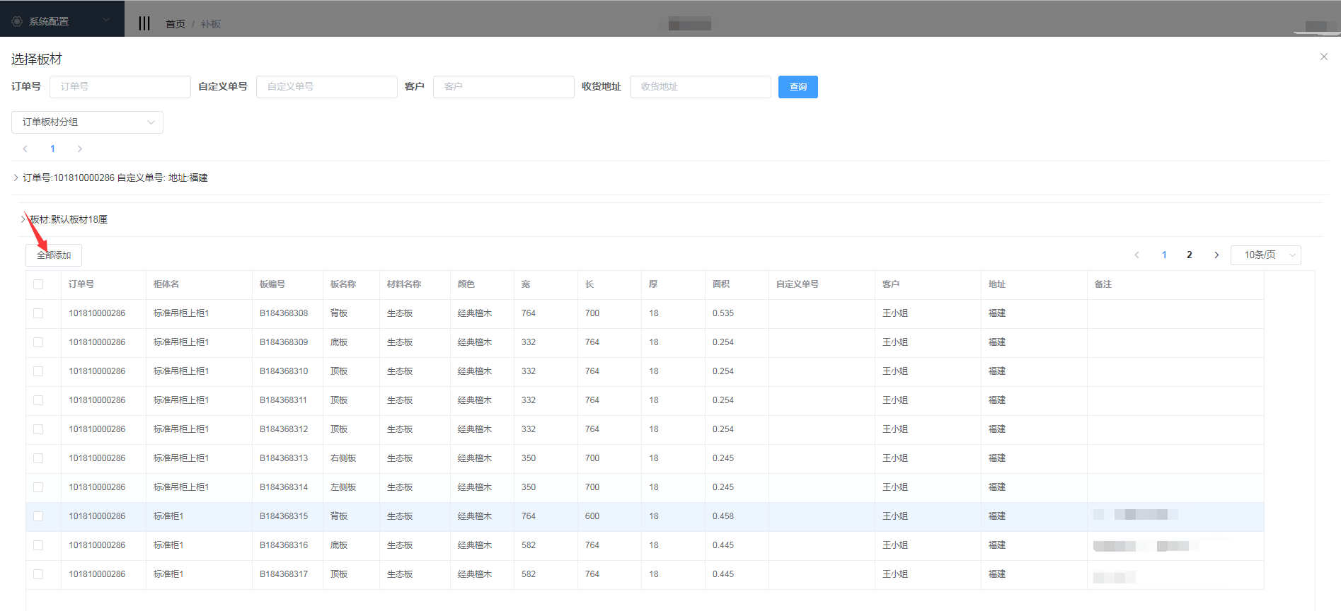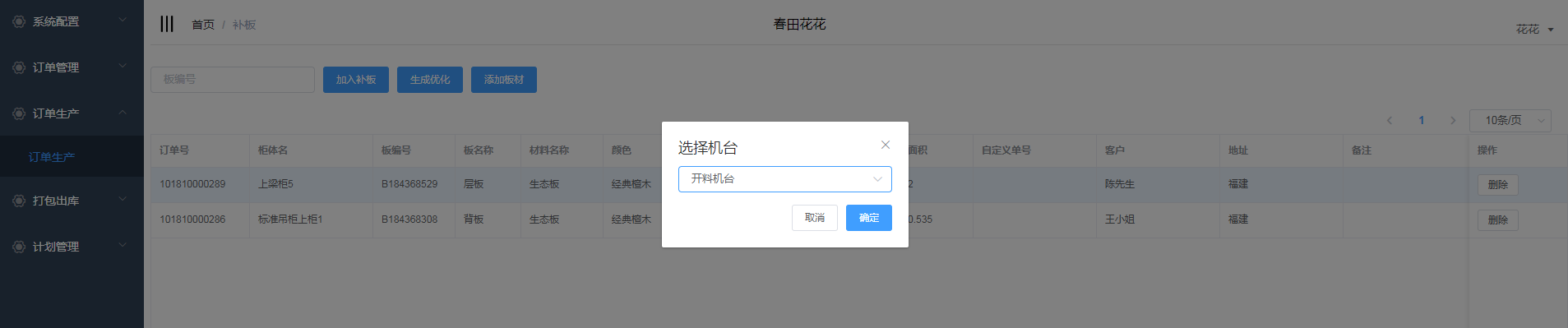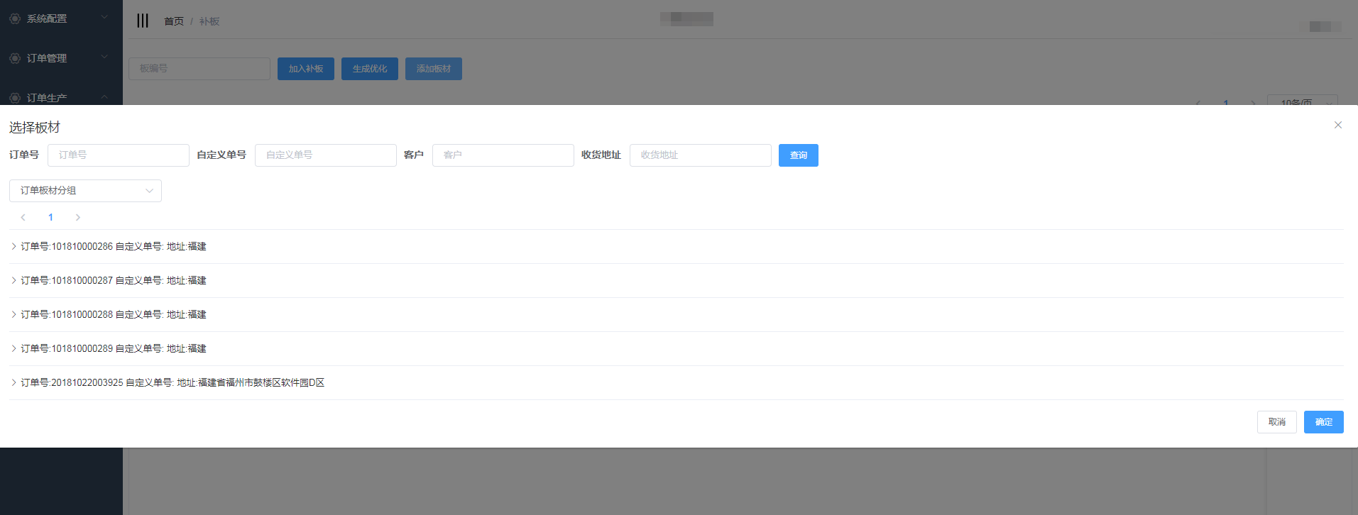 如果用户开启了网页端的优化功能,那么在生产管理中可以使用补板功能