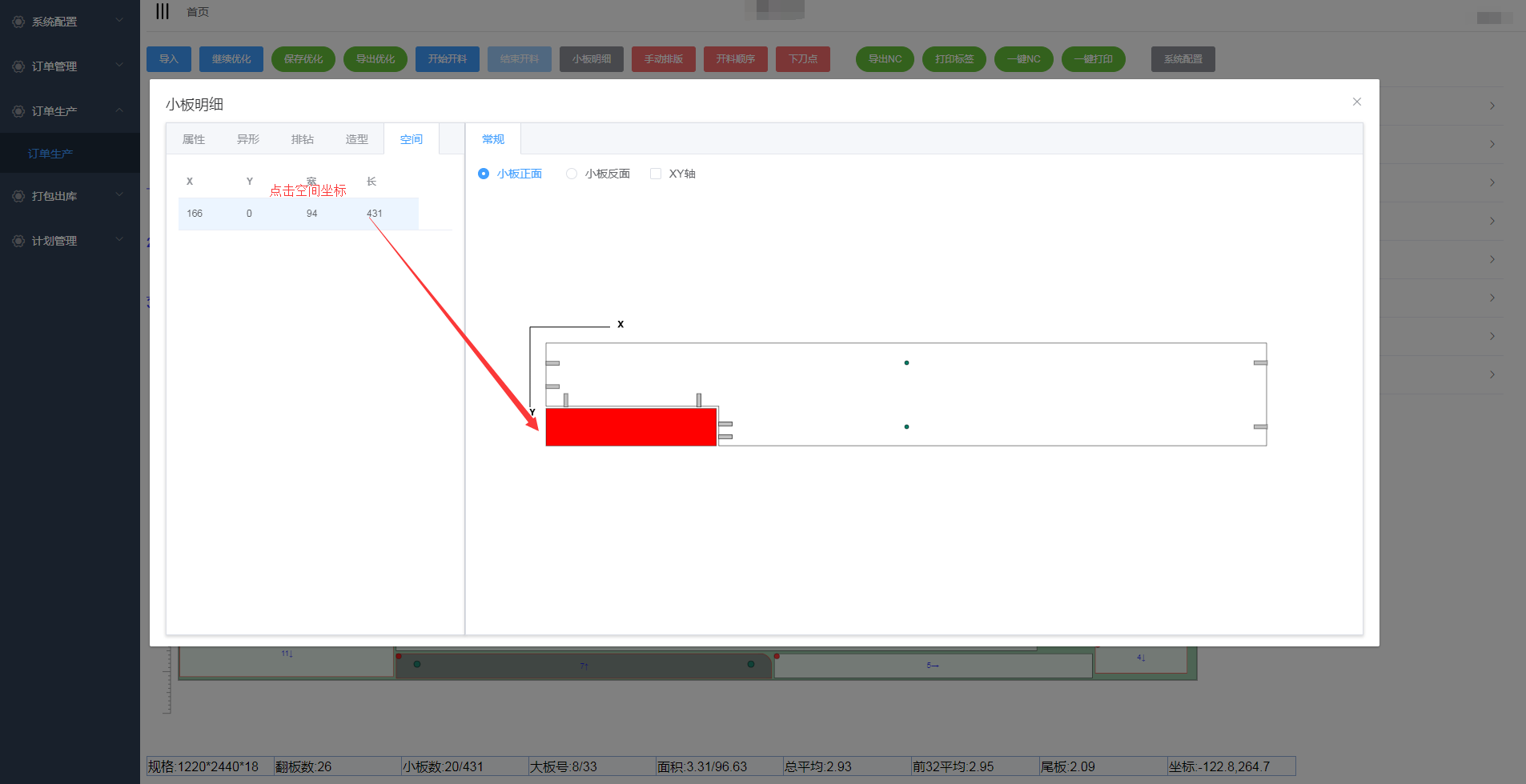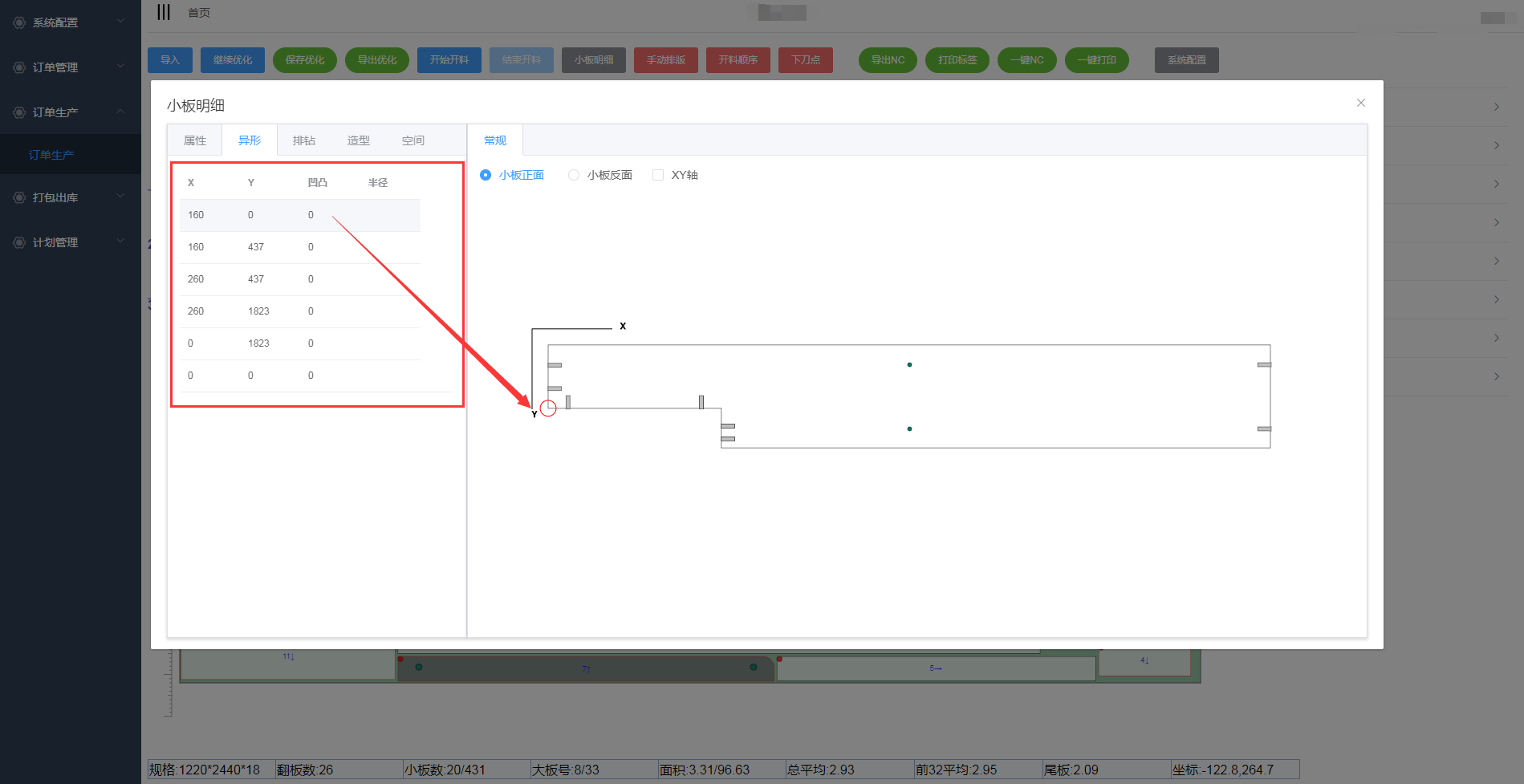 点击异型、排钻或者造型可查看小板的相应的点坐标