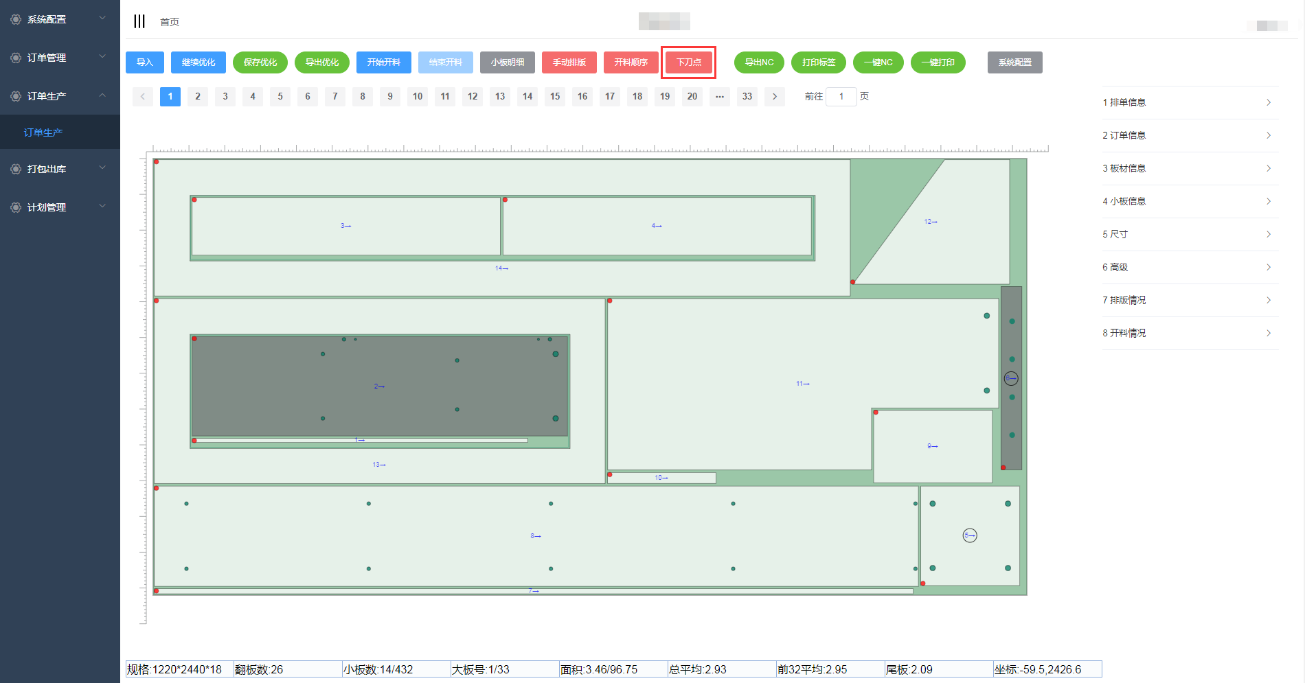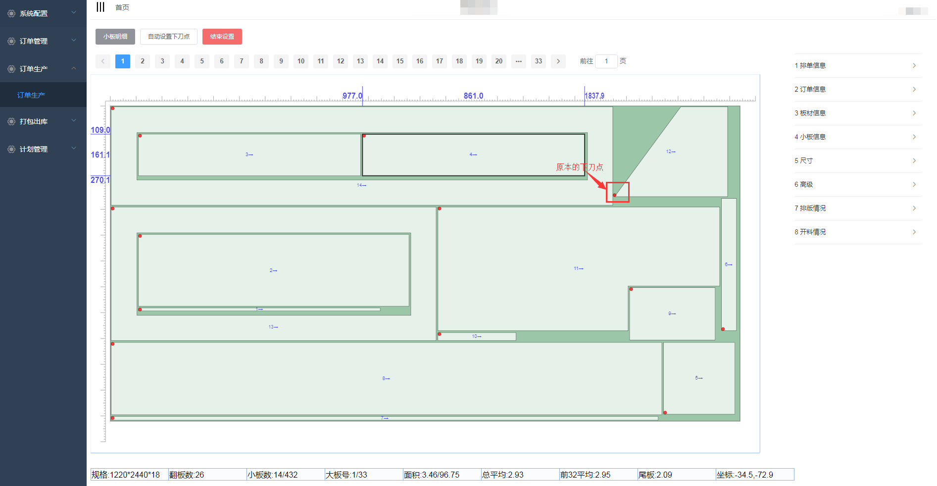 在优化排版页面,点击下刀点可设置小板的下刀点