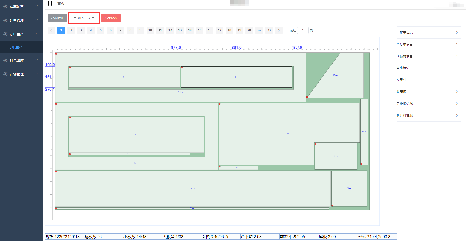 点击自动设置下刀点系统可自动为每块小板设置下刀点