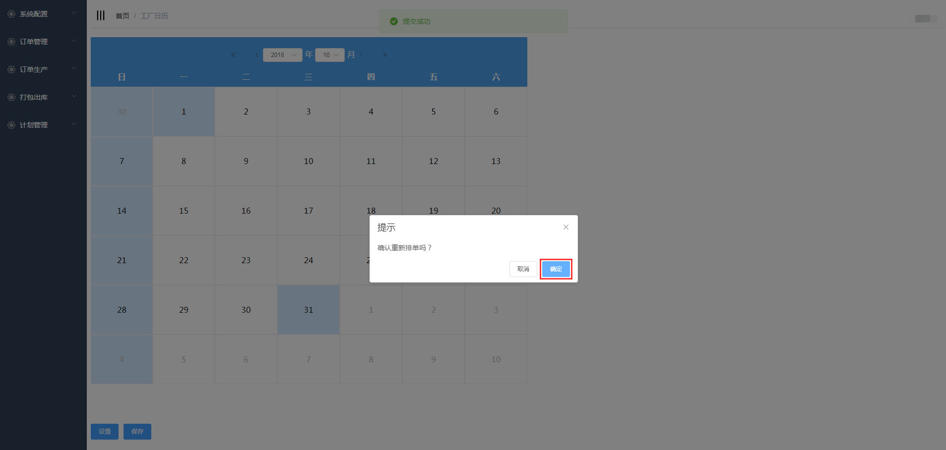 日期设置完后,需要确认重新排单