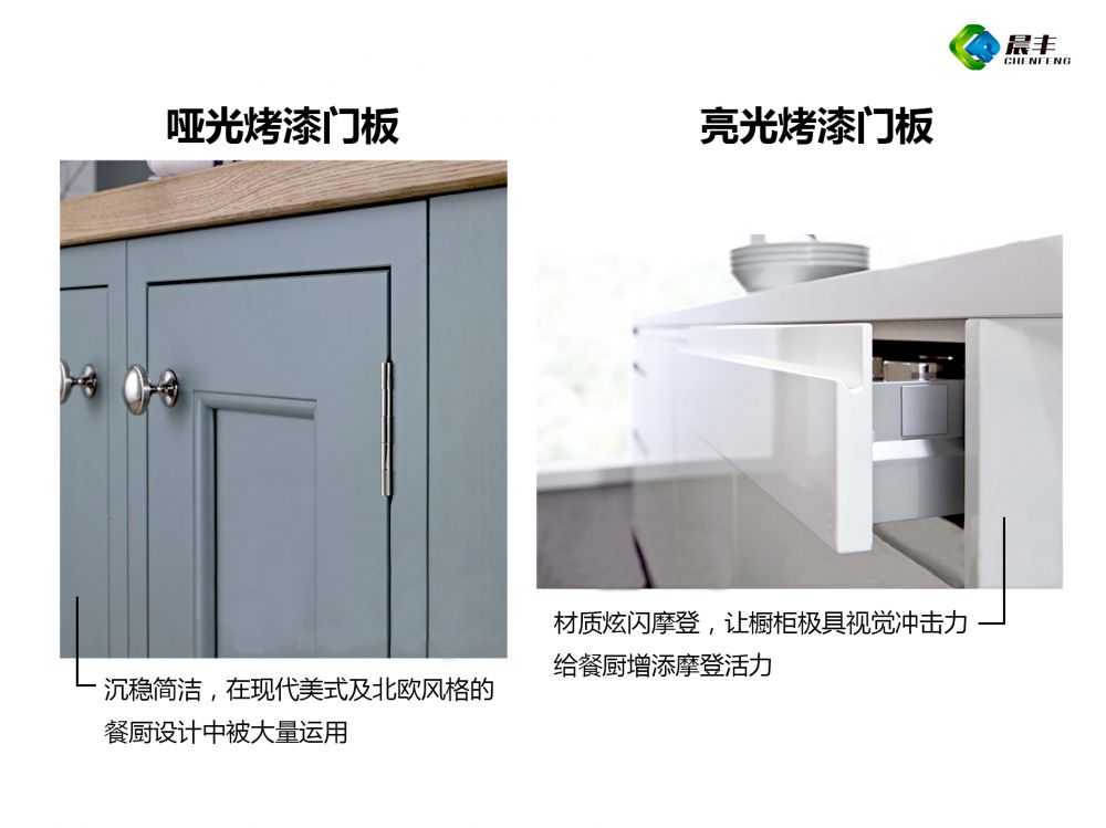厨房总少不了一款实用又美观的橱柜,而门板是橱柜的门面,除了发挥基础功能外,它的材质和色彩直接影响着厨房的风格与实用性。烤漆板以其色泽鲜艳、易于造型,具有很强的防水性能和抗污能力,成为广大客户的选择对象。