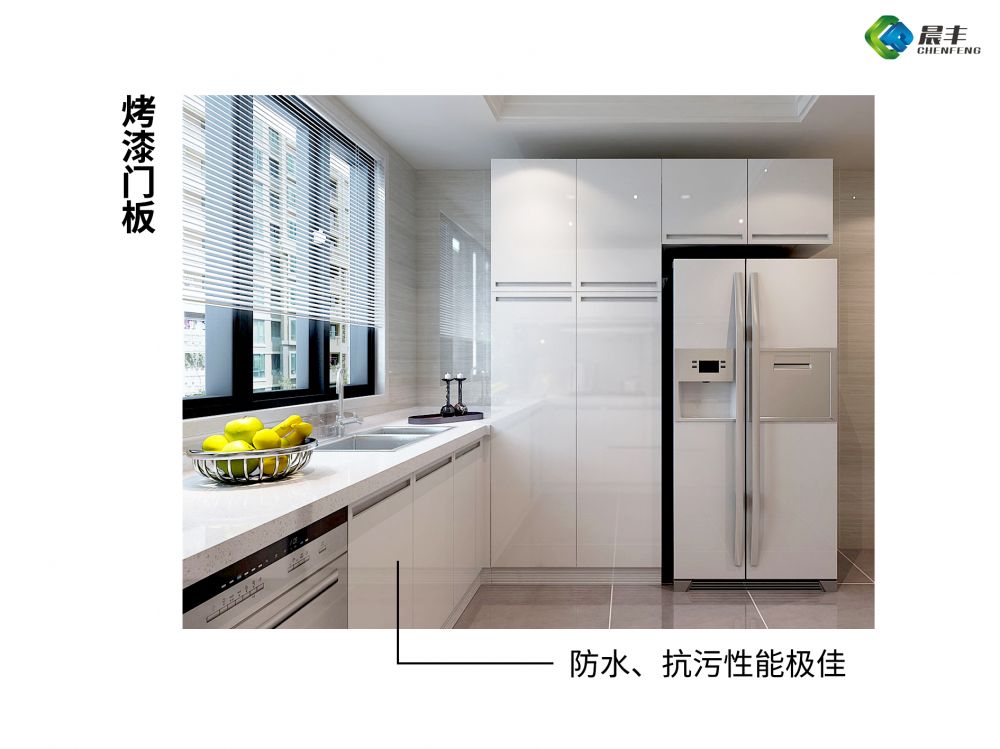 烤漆门板的易清洁、易保养、易选购,再加上门板本身优良的装饰效果,使其得到了橱柜装修业主们的广泛关注,希望各位业主们在使用该门板的过程中,都能留心清洁、定期保养、注意选购。