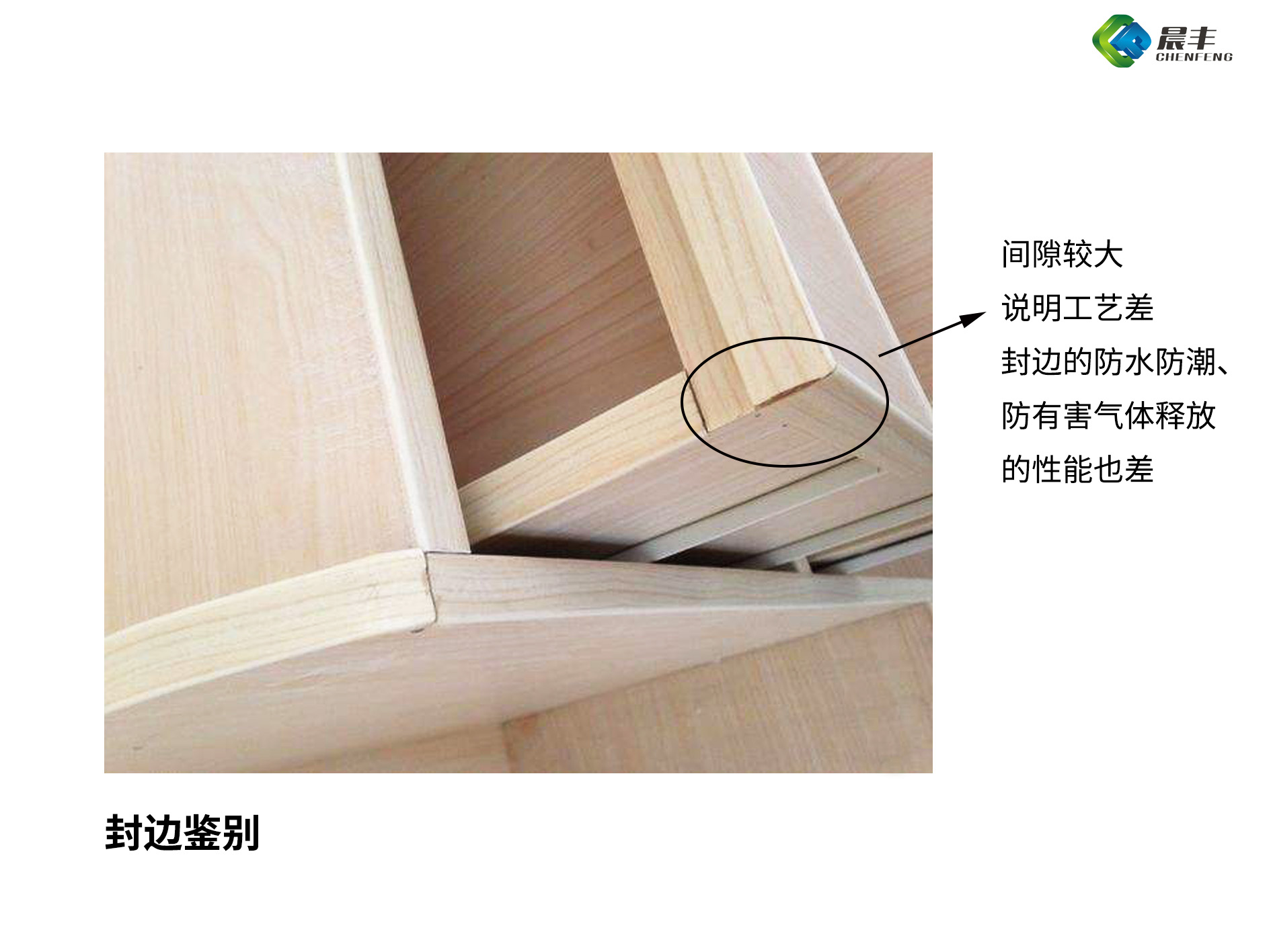 选购时需查看封边条与板材之间是否存在间隙,若是间隙较大,说明工艺差,封边的防水、防潮、防有害气体释放的性能也会大打折扣。